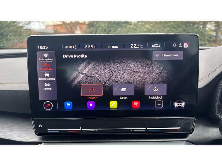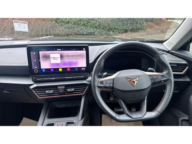 The V1 trim keeps things purposeful and modern. Slide inside and youre met with a digital driver display, large central touchscreen and CUPRAs signature copper accents that give the cabin a distinctive, premium feel. The sports seats are supportive and comfortable, while the low-slung dashboard and sculpted centre console create a cockpit that feels focused on the driver.