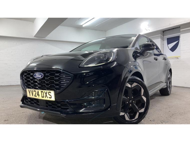Ford Puma 1.0 EcoBoost Hybrid mHEV ST-Line X 5dr Petrol Hatchback, , A sporty and highly specified compact SUV that combines eye catching design, advanced mild hybrid efficiency, and impressive everyday practicality. Powered by the responsive 1.0 litre EcoBoost mild hybrid engine, it delivers lively performance, reduced fuel consumption, and a smooth, refined drive, making it ideal for both urban commutes and longer journeys. The ST-Line X specification adds a premium sporty feel with distinctive exterior styling, alloy wheels, sports suspension, and a high quality interior featuring part leather sports seats and red stitching. Technology is generous, including a digital driver display, touchscreen infotainment with satellite navigation, Apple CarPlay and Android Auto, B&O premium sound system, climate control and keyless entry and start. Practicality is excellent thanks to the flexible boot and innovative MegaBox storage area, offering extra versatility for everyday use. On the road, the Puma is known for its agile handling, confident grip, and comfortable ride. Safety features include adaptive cruise control, lane keeping assist, blind spot monitoring, and autonomous emergency braking for added reassurance. Well presented and highly desirable, this Ford Puma ST-Line X represents superb value and modern hybrid driving.