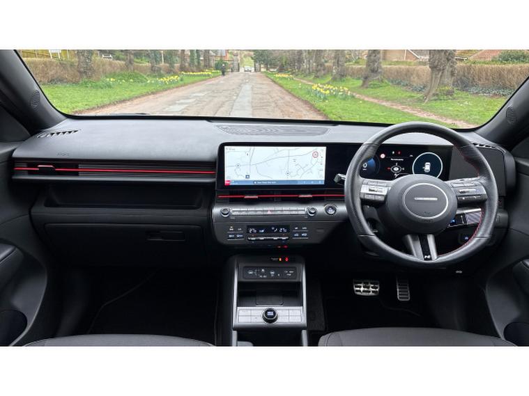 Inside, the N Line trim brings a sporty edge, supportive bolstered seats, race inspired flourishes, and top tier tech including a crisp digital cockpit and intuitive infotainment. Its bold, modern, and unmistakably Hyundai.