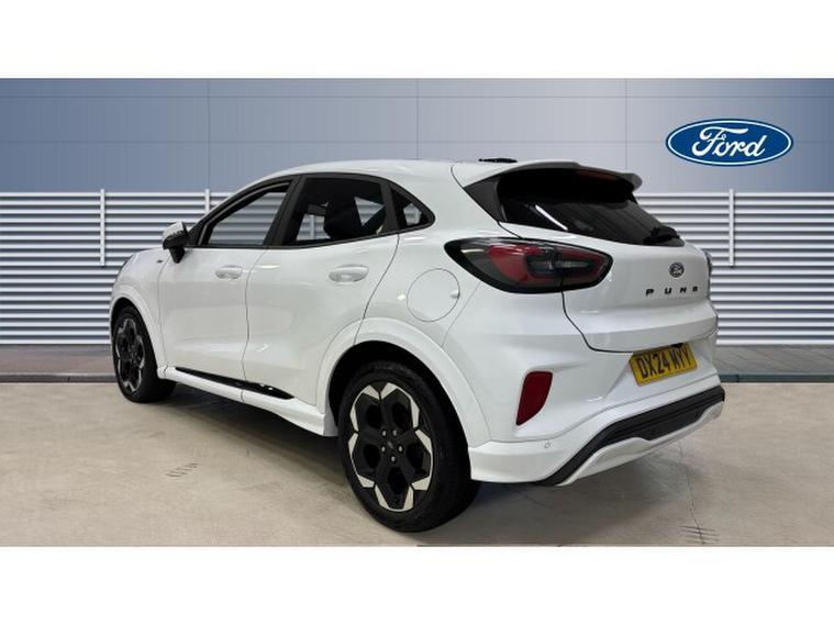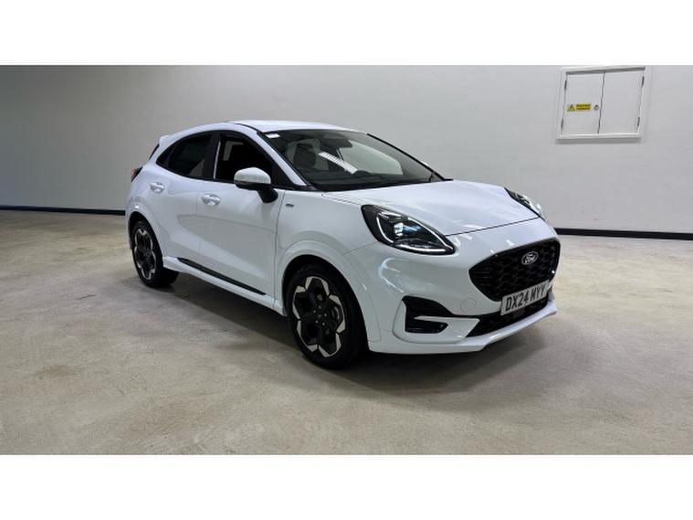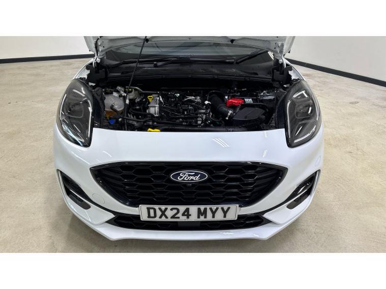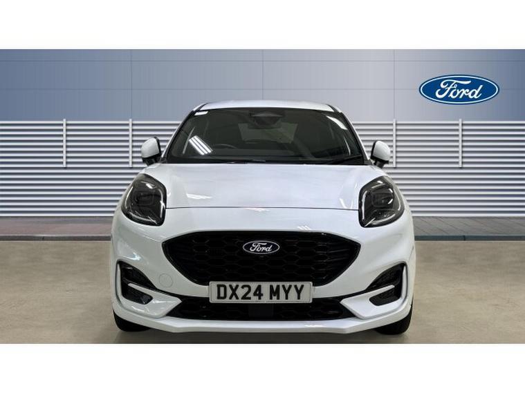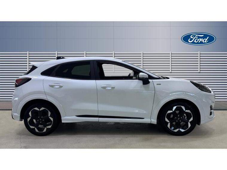 Ford Puma 1.0 EcoBoost Hybrid mHEV ST-Line X 5dr DCT Petrol Hatchback, , Just arrived at Ford Stoke, this Ford Puma 1.0 EcoBoost Hybrid mHEV ST-Line X 5dr in striking Frozen White delivers standout styling, advanced hybrid efficiency, and a premium driving experience. Powered by Ford's award-winning 1.0 EcoBoost mild-hybrid engine, producing 125PS, the Puma offers lively performance with excellent fuel economy and reduced emissions. The ST-Line X specification enhances its sporty character with distinctive exterior styling, larger alloy wheels, and a confident road presence. Inside, the cabin feels refined and driver-focused, featuring part-leather sports seats, a 12.3 digital instrument cluster, and Ford SYNC infotainment with touchscreen display, satellite navigation, Apple CarPlay, and Android Auto for seamless connectivity. Everyday practicality is a key strength, thanks to the innovative MegaBox storage solution, providing added versatility alongside a generous boot. Advanced driver assistance features including adaptive cruise control, lane keeping aid, rear parking sensors, and traffic sign recognition ensure confidence on every journey. Stylish, efficient, and rewarding to drive, this Ford Puma ST-Line X is perfectly suited to modern lifestyles. Available now at Ford Stoke �, , contact our team to arrange your test drive.