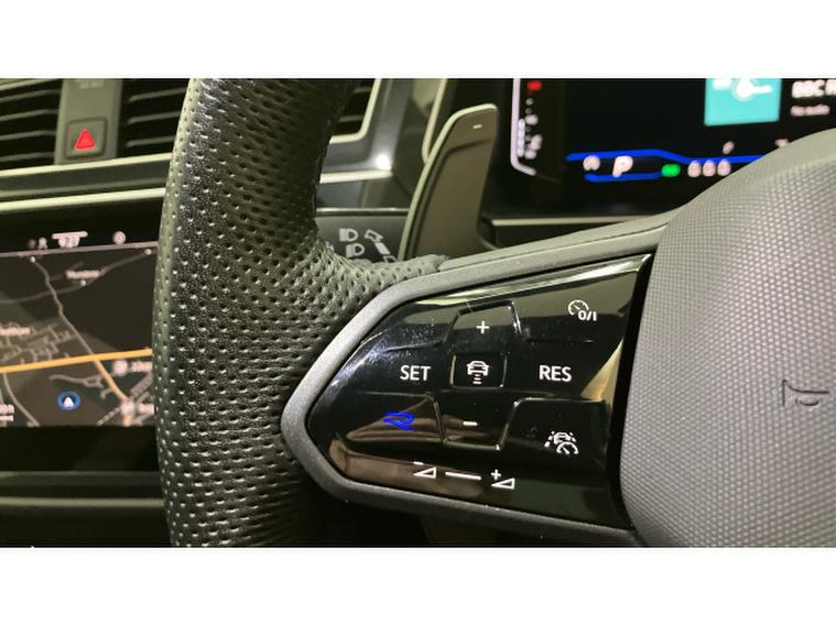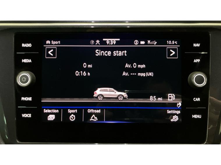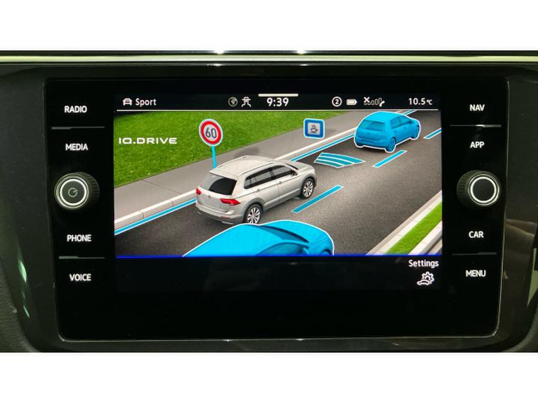 Inside, the Tiguan R blends sportiness with everyday usability. Black and blue cloth upholstery feels sporty and durable, while equipment levels are strong. Highlights include IQ.LIGHT LED matrix headlights, adaptive cruise control, and the Discover Media navigation system with streaming and internet connectivity. The Driver Assistance Pack Plus adds Park Assist, lane change system and dynamic road sign display, while keyless entry and drive and an electric tailgate enhance convenience. A rear-view camera further aids urban manoeuvres.