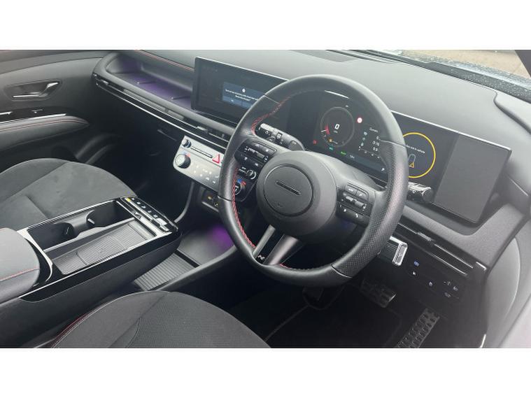 The N Line specification gives this Tucson a bold and athletic presence, featuring distinctive N Line styling, unique alloy wheels, sporty interior detailing, and premium finishes throughout. Inside, youll find a high-tech cabin equipped with a large touchscreen satellite navigation system, Apple CarPlay and Android Auto, digital driver display, rear parking camera with sensors, climate control, heated seats and a comprehensive suite of Hyundai SmartSense safety features including adaptive cruise control and lane assist.