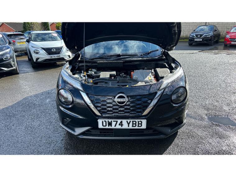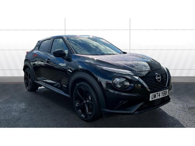 Nissan Juke 1.6 Hybrid Tekna 5dr Auto Hybrid Hatchback, , The Nissan Juke has styling like no other and a decent amount of standard equipment. The Nissan Juke is one of the most divisive cars on the road thanks to its outlandish styling, but underneath the metalwork is a sensible small SUV thats affordable and well equipped. Though for funky looks, the Juke is still king. The swept-back LED strips above massive, round headlights, low roofline and mass of creases along its doors and wheel arches come together in what is one of the most out-there cars on sale. We still cant tell if its handsome, but the Juke is certainly attention grabbing. The cabin isnt as zany as the exterior, with wraparound door cards enveloping the dashboard and a widescreen infotainment display offset above the air vents. Material quality is good, with an Alcantara strip behind the touchscreen elevating things slightly. With most Nissan Jukes set for a lifetime of running around town, its no surprise to learn this is where its best suited. A high-set driving position means youve got a good view of the road ahead, and suitably light steering makes it a breeze to park. With 422 litres to work with in the boot, the Nissan Juke is pretty much par for the course in its class. For context, a VW T-Cross takes the cake with 455 litres, while the Renault Captur matches the Juke. A Skoda Kamiq offers less than all of these at 400 litres. You need the load floor in its higher position if you want it to be level with the 60-40 split-and-fold rear seats when they are tipped forward. With this done, the Juke has up to 1, 305 litres of load capacity, which is among the best among its peers. All versions of the Juke are equipped with a 12.3-inch touchscreen infotainment system. This is a big improvement on the setup previously fitted to the Juke - it's clear, bright and responsive, though certain aspects of the interface are easy to use. It does come equipped with Android Auto and Apple CarPlay - allowing you to seamlessly run your phone apps through the screen.