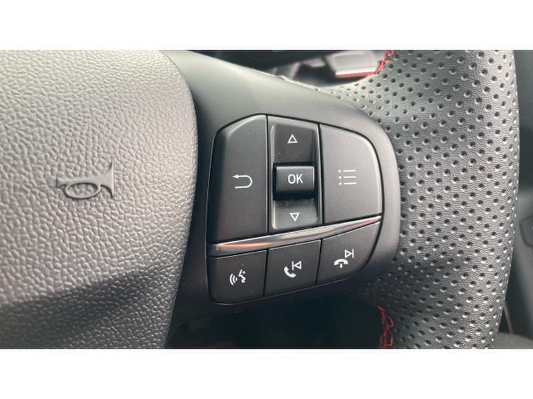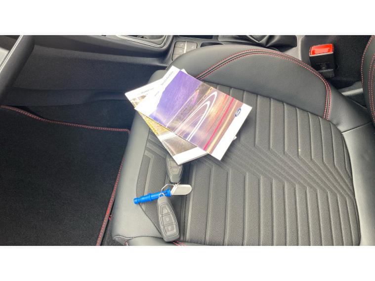 Inside, the cabin is modern, bright, and well-equipped. The SYNC4 touchscreen, digital driver display, and connectivity features like Apple CarPlay and Android Auto make life easy, while the ST-Line X trim adds tasteful sporty touches. Rear passengers enjoy comfortable seating, and the clever MegaBox underfloor storage expands versatility, making the boot both practical and flexible for family life.