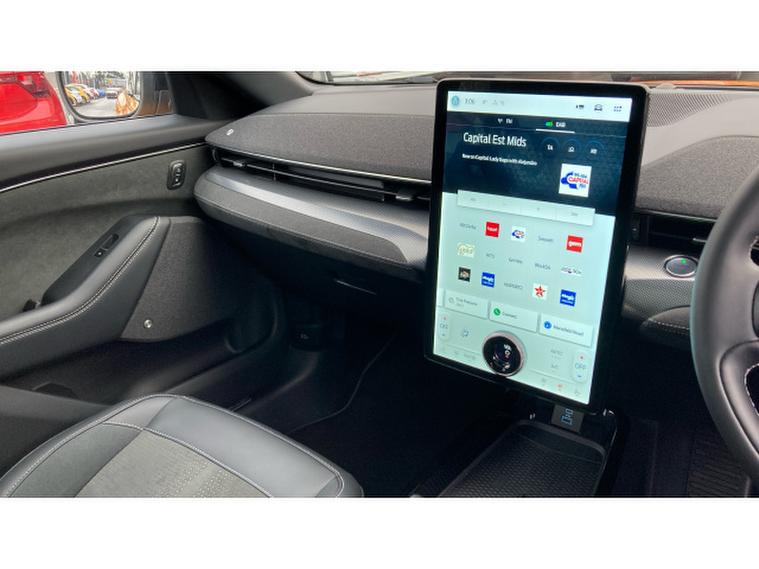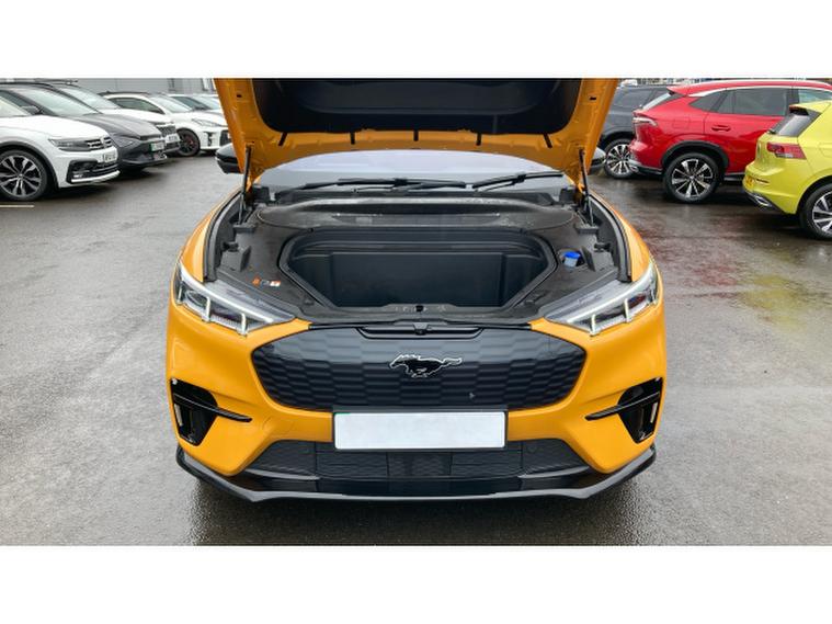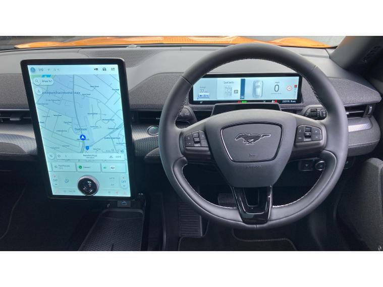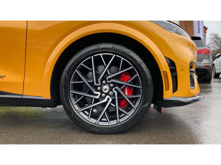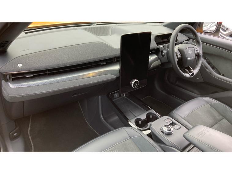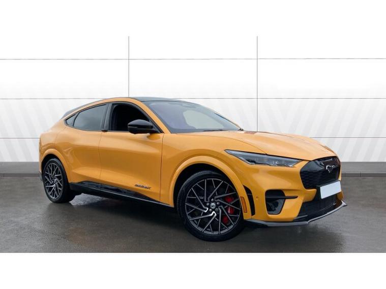 Ford Mustang Mach-E 358kW GT 91kWh AWD 5dr Auto Electric Estate, , This 2023 Ford Mustang Mach E is a superb example, boasting a single owner and low mileage of just 22000. As a fully electric vehicle with four wheel drive, this GT trim model features a substantial 99 kWh battery, offering a maximum range of 304 miles when new. Inside, you'll find a fixed panoramic roof, a heated steering wheel, and heated front seats for enhanced comfort. The E-Latch keyless entry system, complete with B-pillar keypad access, adds a touch of modern convenience. The performance of this Mustang Mach E is truly remarkable, with an acceleration of 0-60mph in a mere 3.6 seconds, setting it apart from many other electric vehicles. Rapid public charging can take the battery from empty to 80% in just 51 minutes. The adaptive LED Mustang signature headlamps provide excellent visibility and a distinctive look too. What a car!