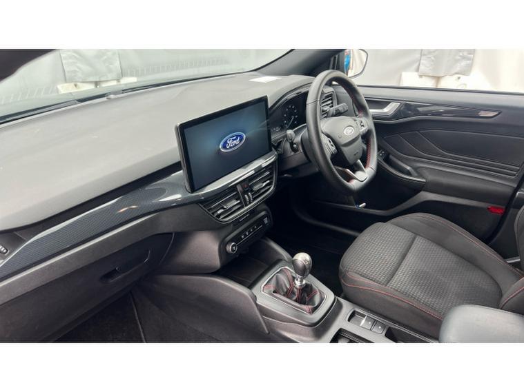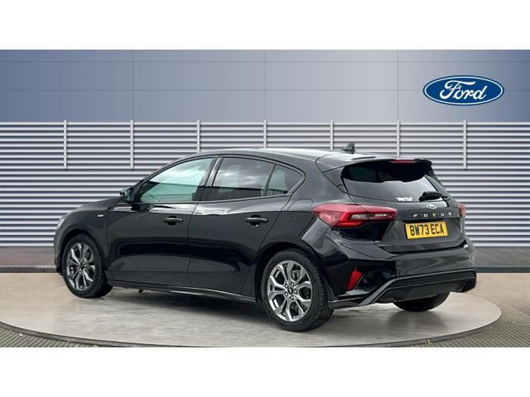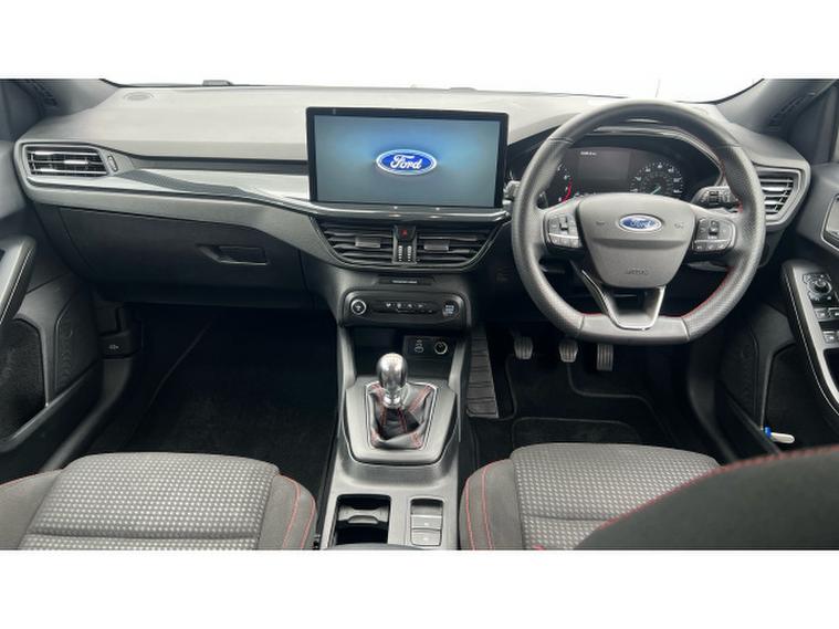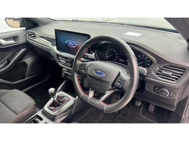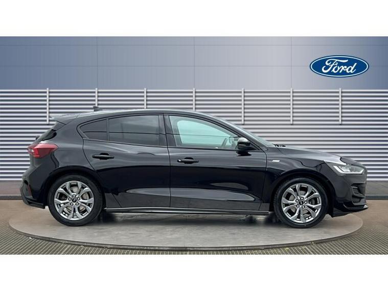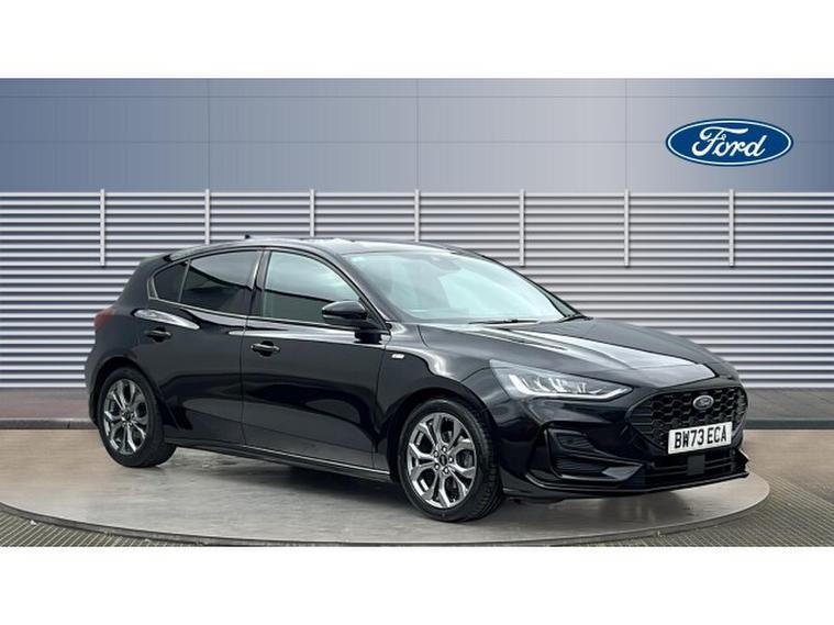 Ford Focus 1.0 EcoBoost Hybrid mHEV ST-Line 5dr Petrol Hatchback, , Gloucester Ford have this Focus Hatchback 1.0 EcoBoost mHEV ST-Line finished in the metallic Agate Black. This Focus ST-Line is a brilliant example of how performance, refinement, and everyday usability can come together in one exceptional package. This model not only looks stunning with its bold colour and sporty ST-Line styling but also delivers a driving experience that feels both dynamic and composed. The mild-hybrid (mHEV) powertrain provides a smooth, responsive performance thats perfectly suited to urban commuting and long motorway journeys alike. The ST-Line chassis and tuning bring a sharper edge to the Focuss already impressive handling, giving you confidence through corners and a poised feel on every stretch of road. Its the kind of car that makes even routine drives enjoyable. Inside, the cabin feels modern and well thought out. The highlight is the SYNC 4 infotainment system, a responsive, feature-rich interface that makes connectivity and navigation easier than ever. With its sleek touchscreen, smartphone integration via Apple CarPlay and Android Auto, and clear voice-control functions, staying connected and entertained on the go is effortless. Practical features like front and rear parking sensors add reassurance in everyday driving situations. Whether youre navigating tight city streets, reversing into a snug space, or approaching obstacles on the driveway, these sensors help you manoeuvre with confidence and precision. Comfort and convenience continue throughout the interior, with supportive seats and quality materials that make longer trips more relaxing. The Focus also benefits from excellent visibility and clever storage solutions, giving you both driver-friendly ergonomics and real-world practicality. Overall, the Ford Focus mHEV ST-Line in Agate Black stands out as a sophisticated yet sporty choice. It combines stylish design, advanced technology, confident driving dynamics, and thoughtful everyday features, making it an excellent all-round hatchback for drivers who want performance without compromising comfort or efficiency.
