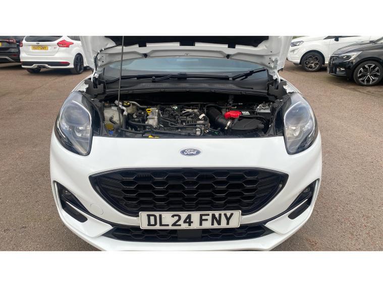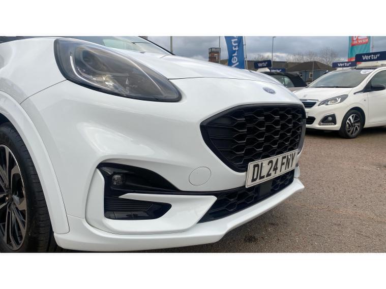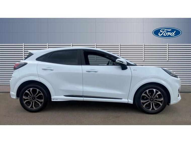 Ford Puma 1.0 EcoBoost Hybrid mHEV ST-Line 5dr Petrol Hatchback, , The Ford Puma ST-Line MHEV in Frozen White is a compact SUV that delivers a thrilling blend of head-turning style, clever technology and outstanding efficiency. With its sculpted lines, athletic stance and distinctive ST-Line body styling, this Puma looks every inch the modern performance crossover. The crisp Frozen White paintwork highlights every contour, from the bold grille to the swept-back headlights, giving it a fresh, dynamic presence that stands out in any setting.