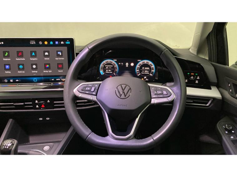Inside, the Golf Life offers a modern and comfortable cabin designed around the driver. The Discover Navigation system with a large 12.9 infotainment display keeps everything clear and intuitive, while Apple CarPlay and Android Auto provide seamless smartphone integration for music, navigation and calls. The leather-trimmed multifunction steering wheel and leather gearshift add a premium feel to every drive.