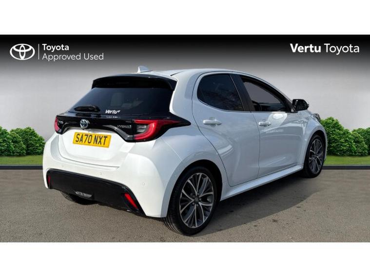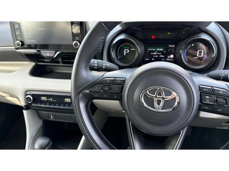 Toyota Yaris 1.5 Hybrid Excel 5dr CVT Hybrid Hatchback, , Discover this stunning Toyota Yaris Excel 1.5 Hybrid, finished in eye-catching Platinum White Pearl paintwork and with just 14, 724 miles on the clock a superb example of style, efficiency and advanced technology coming together. As the range-topping Excel model, this Yaris is packed with premium features including sleek 17-inch alloy wheels, heated front seats, a heated steering wheel, smart keyless entry and push-button start for effortless convenience. The advanced 1.5-litre self-charging hybrid engine delivers a smooth, responsive drive with outstanding fuel economy, seamlessly switching between petrol and electric power for maximum efficiency. Inside, youll enjoy a high-definition touchscreen infotainment system with navigation, smartphone integration via Apple CarPlay and Android Auto, plus a reversing camera for stress-free parking. Safety is equally impressive with Toyota Safety Sense, offering adaptive cruise control, lane trace assist and pre-collision warning for complete peace of mind. Best of all, it benefits from Toyotas incredible 10-Year Service Activated Warranty meaning with annual servicing at Toyota, youre covered year after year up to 10 years or 100, 000 miles. This is hybrid driving at its most refined economical, high-spec and ready to impress.
