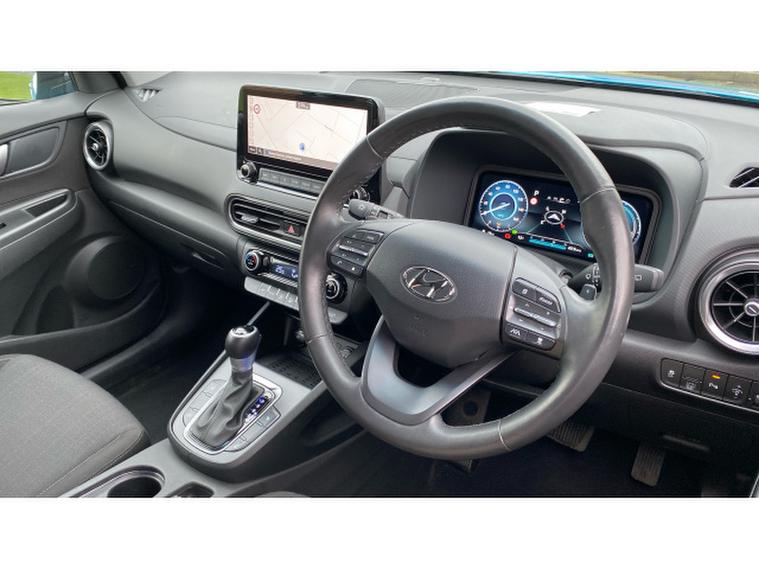 Hyundai KONA 1.6 GDi Hybrid Premium 5dr DCT Hybrid Hatchback, , The Hyundai KONA 1.6 GDi Hybrid Premium 5dr DCT Hybrid Hatchback is a stylish and efficient compact SUV that combines modern design, advanced technology, and everyday practicality. Finished in striking blue and showing just 12, 818 miles on a 23/72 registration, this low-mileage example also benefits from a full service history (FSH), offering added reassurance and reliability for its next owner. Powered by a 1.6-litre GDi petrol engine paired with a hybrid system and a smooth dual-clutch automatic (DCT) transmission, it delivers responsive performance while maintaining excellent fuel efficiency. The Premium trim comes generously equipped with 17-inch alloy wheels, LED headlights, keyless entry with push-button start, rear parking sensors with reversing camera, and dual-zone climate control, making every journey comfortable and convenient. Inside, a large touchscreen infotainment system with satellite navigation, Apple CarPlay, and Android Auto keeps you connected on the move, while a digital driver display provides clear and easy-to-read driving information. Safety and practicality are also highlighted, with features including lane keep assist, forward collision avoidance, and a low insurance group rating, making it ideal for both new and experienced drivers. Pop in here at Hyundai Peterlee to see it for yourself and arrange a test drive today.