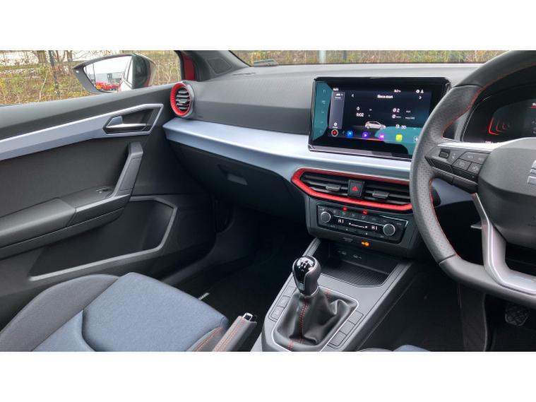 SEAT Ibiza 1.0 TSI 115 FR 5dr Petrol Hatchback, , With an incredibly low mileage of just 21 miles, this 2025 SEAT Ibiza TSI FR presents an exceptional opportunity. This one owner vehicle boasts a 1.0 litre Euro 6 compliant petrol engine, ensuring efficient performance. It comes equipped with a host of modern features, including full LED automatic headlights with dynamic range control and a coming and leaving home function, alongside striking LED daytime running lights. Stay connected and entertained with Full Link smartphone integration, compatible with both Android Auto and Apple CarPlay, and enjoy seamless Bluetooth audio streaming and handsfree calls. For added convenience, rear parking sensors are fitted, and you can maintain your ideal cabin temperature with the dual zone climate control.