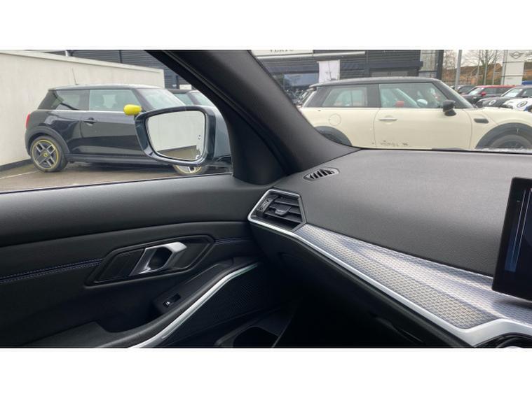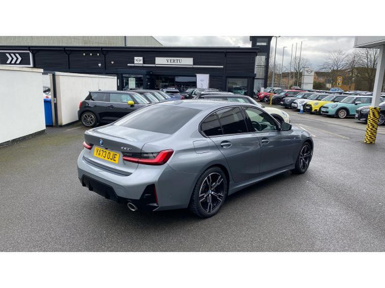 BMW 3 Series 320i M Sport 4dr Step Auto Petrol Saloon, , Experience sporty elegance and premium driving dynamics with this BMW 320i M Sport Saloon, finished in the striking Skyscraper Grey Metallic. This modern, sophisticated colour perfectly highlights the sharp lines of the 3 Series, giving it real presence on the road. Inside, the Alcantara/Sensatec Black upholstery with Blue stitching offers a beautifully crafted cabin environment, combining durability, comfort and a distinctly athletic look. The 18â€'inch alloy wheels complete the package, delivering both style and a confident stance.