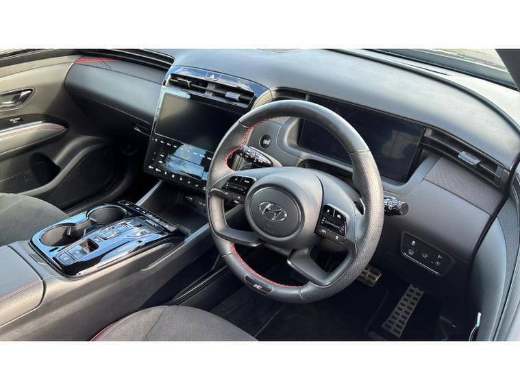 Hyundai TUCSON 1.6 TGDi Hybrid 230 N Line S 5dr 2WD Auto Hybrid Estate, , Experience the perfect blend of bold design, advanced technology and impressive hybrid efficiency with this outstanding 2023 Hyundai Tucson 1.6 TGDi 230 Hybrid N Line S. As one of Hyundai's flagship trims, the N Line S offers an unmistakably sporty look with its striking body styling, aggressive front grille and sleek alloy wheels, giving the Tucson real presence on the road.