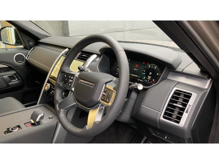 Land Rover Discovery 3.0 D350 Dynamic HSE 5dr Auto Diesel Station Wagon, , This 2025 Land Rover Discovery D350 Dynamic HSE presents an exceptional opportunity with an incredibly low mileage of just 1770 miles. This seven seat, four wheel drive model is powered by a robust 3.0 litre diesel engine, meeting Euro 6 emission standards. It boasts a sophisticated Windsor Leather interior in Ebony, complemented by striking 21 inch Gloss Black alloy wheels in Style 5123. Enjoy the open air with a sliding front sunroof and a fixed rear panoramic roof, while convenient features like wireless device charging and automatic headlights enhance your driving experience.