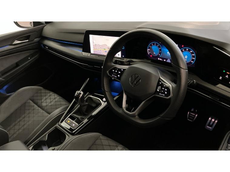 Volkswagen Golf 1.5 TSI 150 R-Line 5dr Petrol Hatchback, , Boasting exceptionally low mileage for its age, this 2024 Volkswagen Golf TSI R-Line presents a superb ownership proposition. As a Volkswagen manufacturer approved vehicle, it comes with the reassurance of a 12 month warranty and a full service history, having been meticulously maintained by its single owner. This R-Line trim features a responsive 1.5 litre petrol engine, meeting Euro 6 emission standards, and is equipped with striking LED self levelling headlights with integrated daytime running lights.