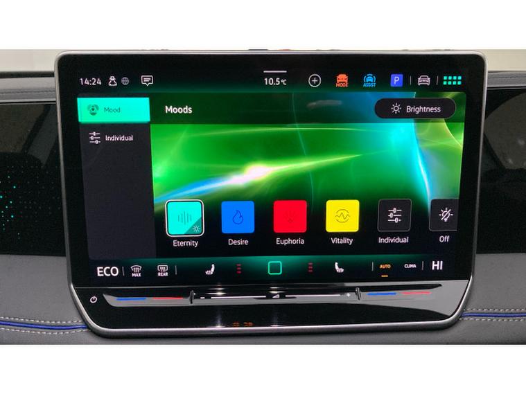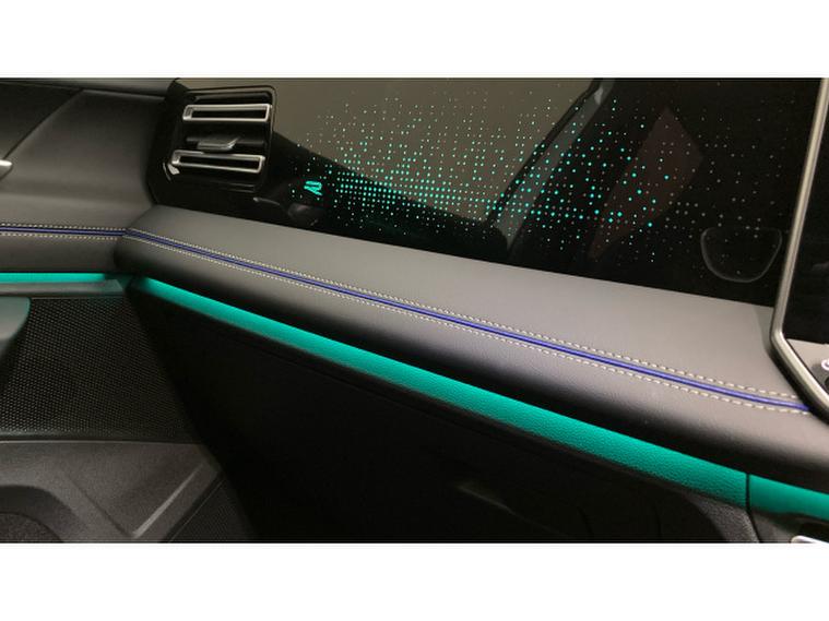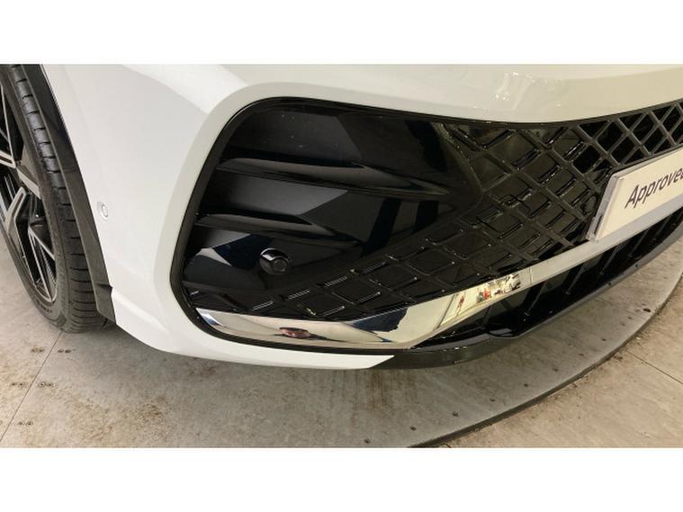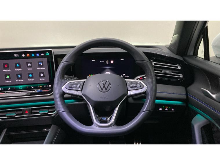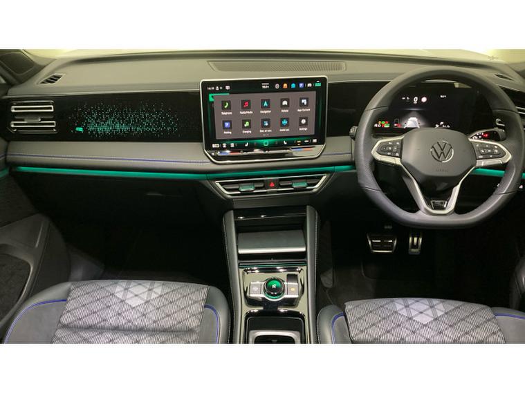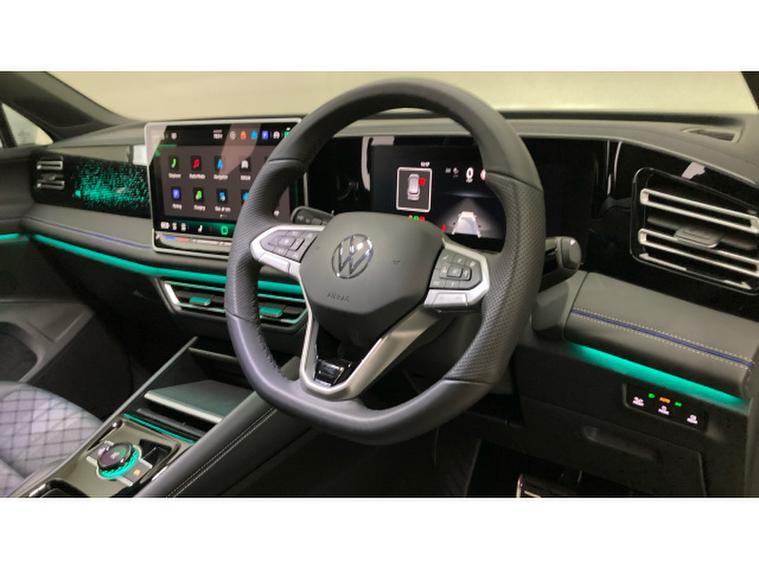 The bold R-Line design is enhanced by stunning 20-inch Leeds diamond-turned alloy wheels, giving this SUV a commanding road presence. Inside, the cabin is both luxurious and practical, featuring a heated, leather-wrapped multifunction sports steering wheel with shift paddles, heated front seats, and a high-quality finish throughout.