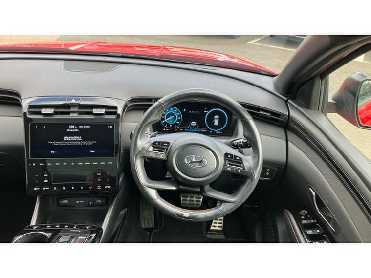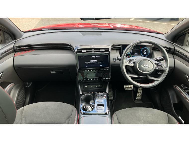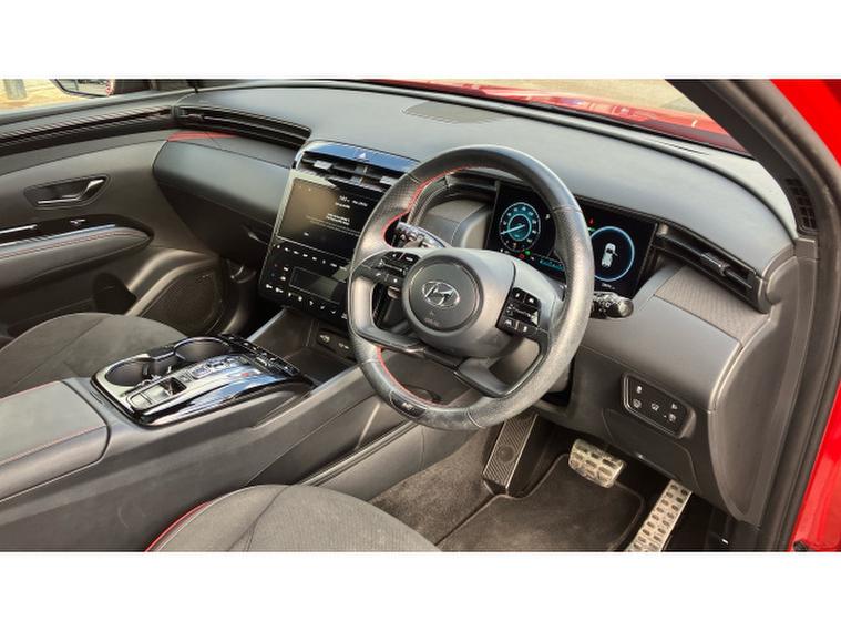 Hyundai TUCSON 1.6 TGDi Hybrid 230 N Line S 5dr 2WD Auto Hybrid Estate, , Stand out from the crowd in this super sporty red Tucson N Line S Hybrid! From the moment you approach, the Tucson N Line S impresses with its dynamic N Line styling, bold front grille, and athletic stance. The panoramic sunroof floods the cabin with natural light, enhancing the sense of space and modernity, while the stunning red exterior highlights the SUV's refined and sporty presence. It's a vehicle that looks as advanced as it drives. Inside, the focus is on technology and convenience. Heated seats ensure comfort for both driver and passengers, whatever the weather. Apple CarPlay allows seamless smartphone integration, keeping navigation, music, and calls easily accessible. The rear view camera and parking sensors provide complete confidence when manoeuvring into tight spaces, while cruise control adds ease to longer journeys. Every element is designed to make driving more intuitive, relaxing, and connected. The hybrid powertrain ensures smooth, efficient performance, delivering responsive acceleration while reducing fuel consumption. Coupled with precise steering and a comfortable ride, the Tucson N Line S makes city driving, motorway cruising, and weekend adventures effortless. Buy your vehicle in complete confidence with us. Our experienced sales team would be happy to send you a personalised video, so you can take a tour of the vehicle from the comfort of your own home. We can also organise a test drive at your convenience. If you require further information regarding this vehicle please don't hesitate to contact us, we would be more than happy to assist.