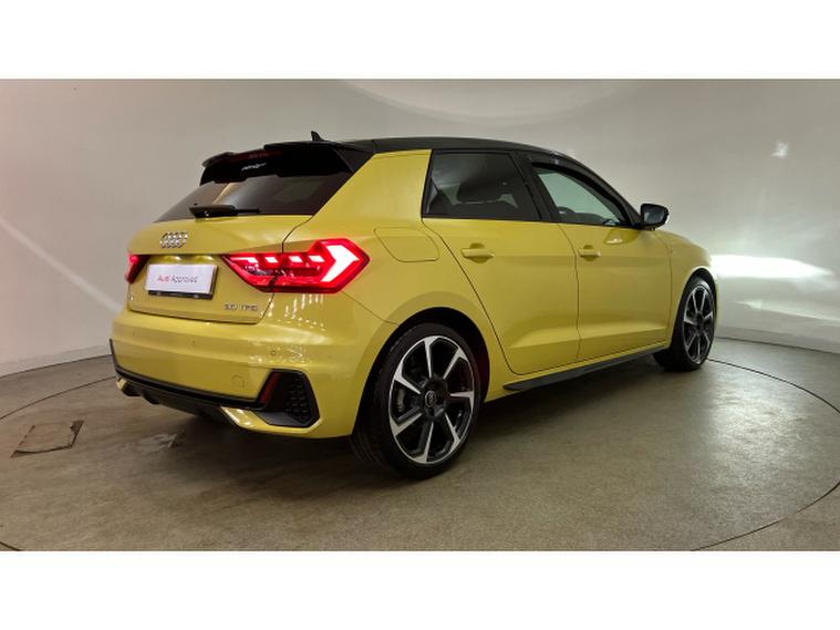 Finished in the striking Python Yellow with a contrasting Mythos Black roof, this 2023 Audi A1 Sportback Black Edition really stands out from the crowd. The vibrant paintwork pairs perfectly with the Black Styling Package, giving the car a sharp, sporty appearance that complements the S line styling beautifully.