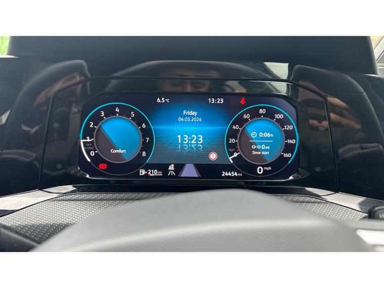 Safety and driver assistance are excellent, with Adaptive Cruise Control including speed limiter, Front Assist with autonomous emergency braking for vehicles, pedestrians and cyclists, and Lane Assist for added confidence on longer journeys. The vehicle also benefits from Keyless-Go, an anti-theft alarm system with interior monitoring, Light & Sight Pack with rain sensor and auto-dimming rear view mirror, plus a space and weight saving spare wheel for added reassurance.