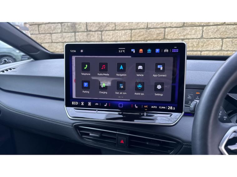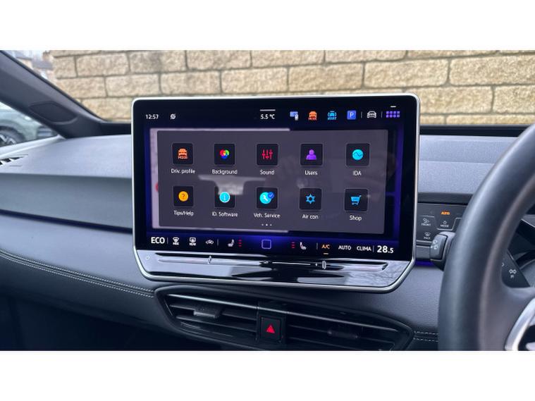 Inside, the ID.3 features a modern, spacious and high-quality interior designed around comfort and technology. A fully digital cockpit and large touchscreen infotainment system with satellite navigation, Apple CarPlay and Android Auto provide seamless connectivity, while the minimalist layout enhances the driving experience.