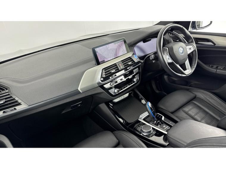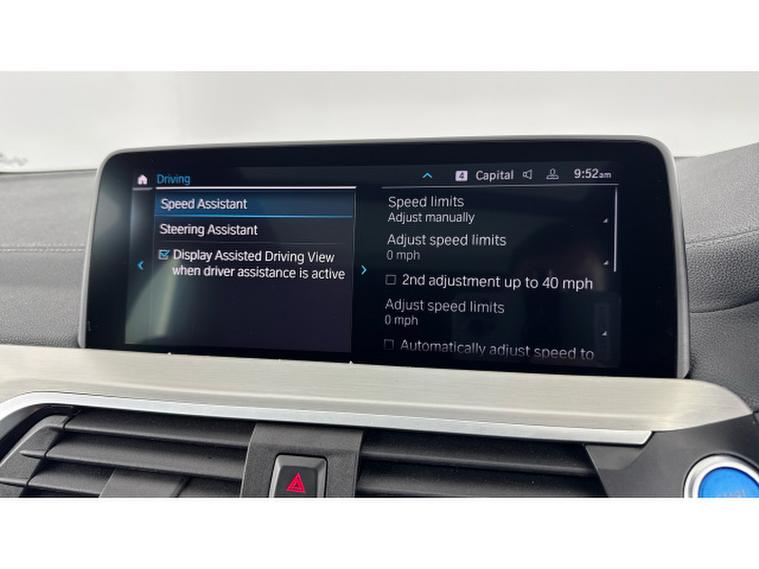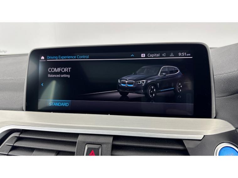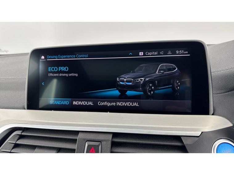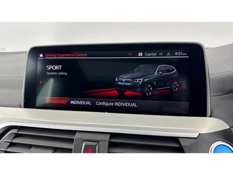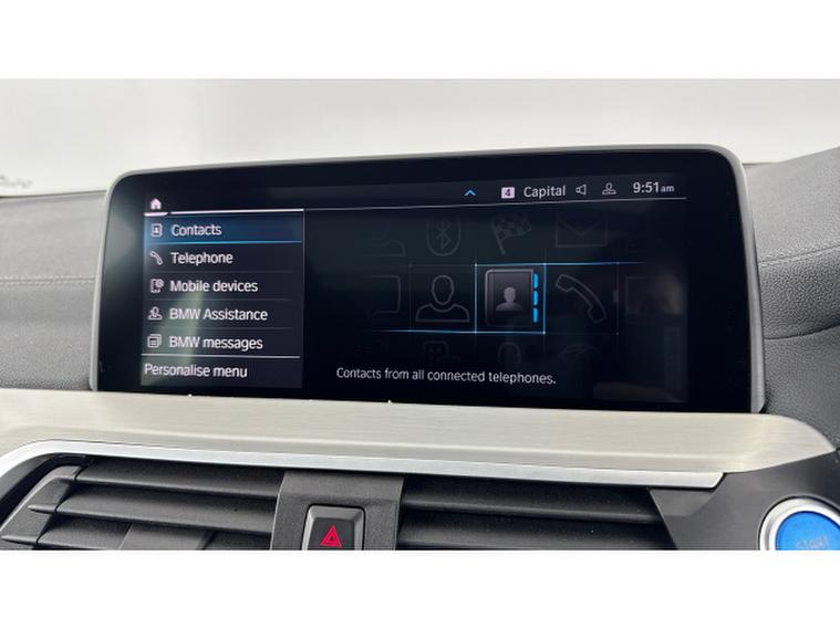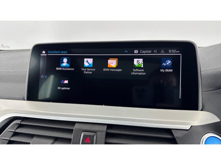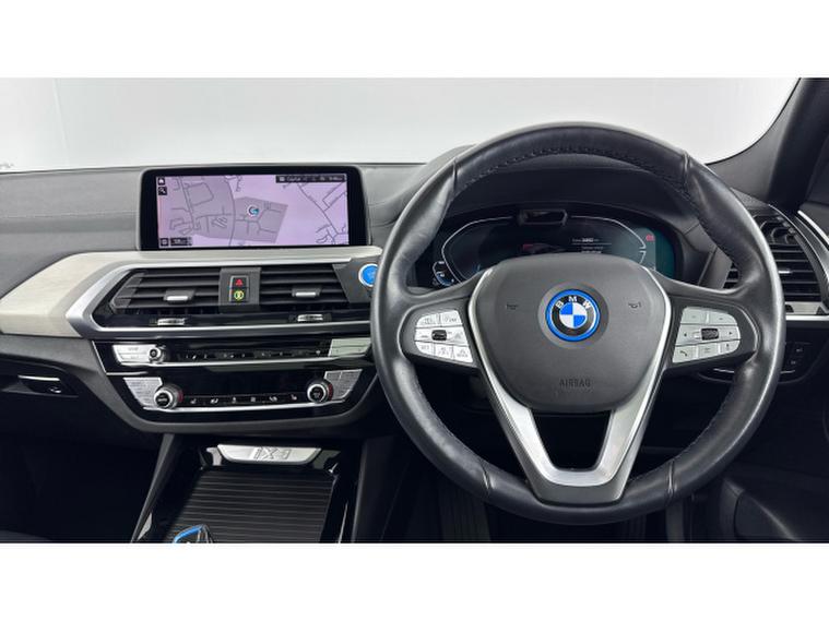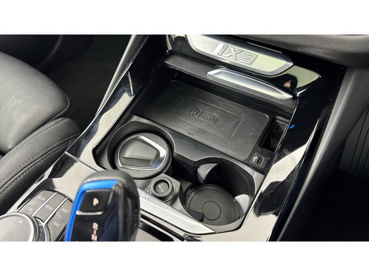 This iX3 is a spacious electric SUV which boasts a wonderfully smooth ride with endless space for passengers and storage as well as a wealth of technology to improve performance, safety and driving ease. Diving into the standout features The 20 Inch Alloy Wheels that perfectly contrast the Carbon Black. The Adaptive Suspension provides a wonderfully smooth ride as you tackle city streets or motorways. The M Sport Leather Steering Wheel adds comfort and total control behind the wheel. The M Sport Exterior Styling provides a stylish exterior trim with the world-renowned M Sport Badges.
