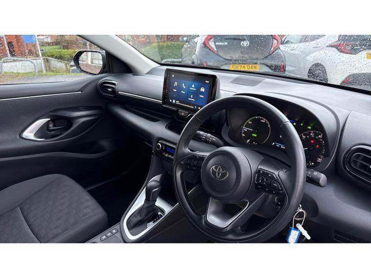 Toyota Yaris 1.5 Hybrid Icon 5dr CVT Hybrid Hatchback, , The Toyota Yaris 1.5 Hybrid Icon 5dr CVT is the perfect combination of smart technology, outstanding efficiency and modern style and with just 8, 236 miles on the clock, this superb example is barely run in! Finished in sleek Eclipse Black metallic paintwork, it has a sharp, confident road presence that perfectly complements its cutting-edge hybrid performance. Powered by Toyotas 1.5 self-charging hybrid engine paired with a smooth CVT automatic gearbox, it delivers punchy acceleration, ultra-low emissions and fantastic fuel economy without ever needing to plug in.
