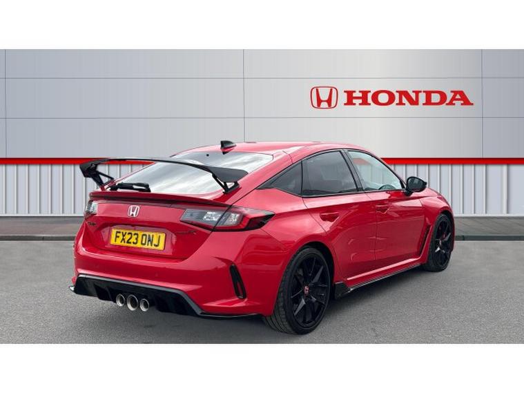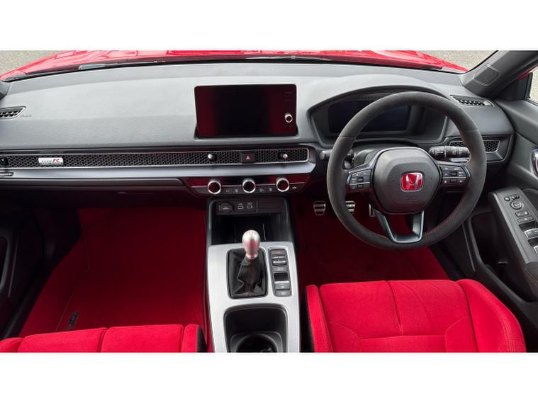 The aggressive exterior styling makes an unmistakable statement. The sculpted bodywork, aerodynamic rear wing, functional air vents, and bold triple-exit exhaust system are not just for show they enhance airflow and high-speed stability. The Rallye Red paintwork highlights every sharp contour, ensuring this Type R stands out from every angle.