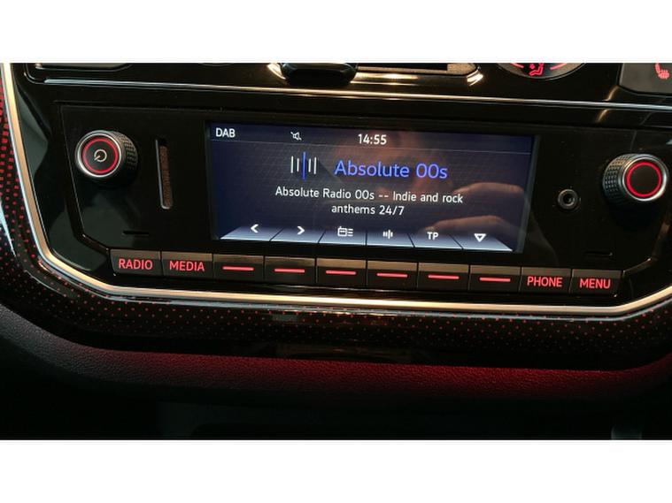 Inside, the up! GTI combines practicality with connectivity. The Composition Phone system features 6 speakers, Bluetooth audio and phone connection, and a multifunction display, keeping you informed and entertained on every journey. Cruise control and parking distance sensors make driving and manoeuvring effortless, while manual height-adjustable front seats ensure comfort tailored to you.