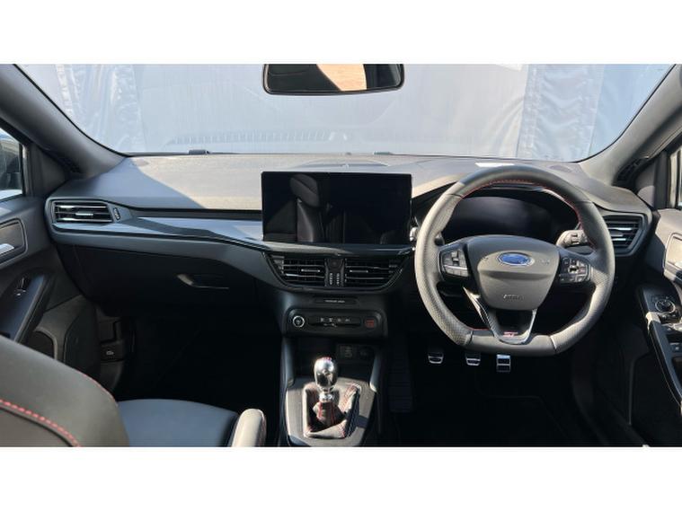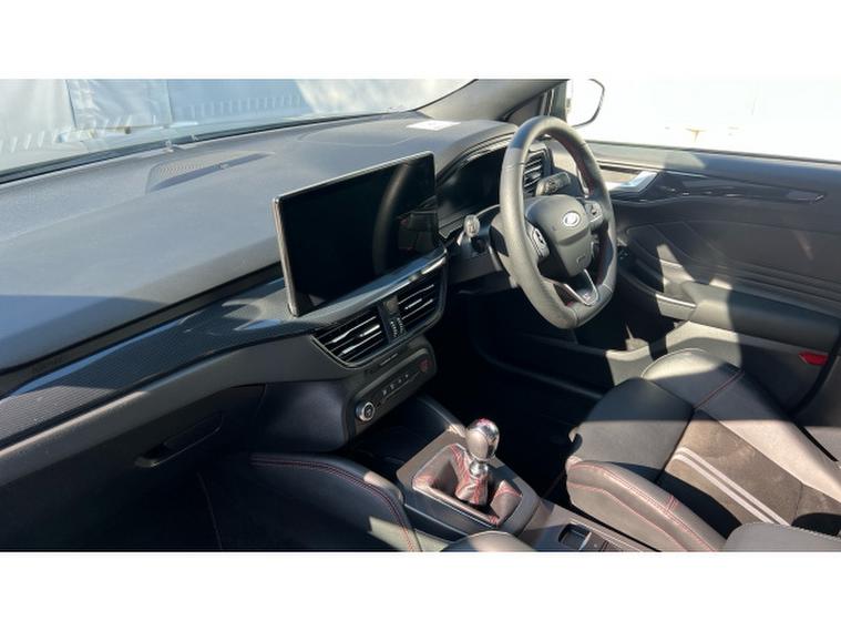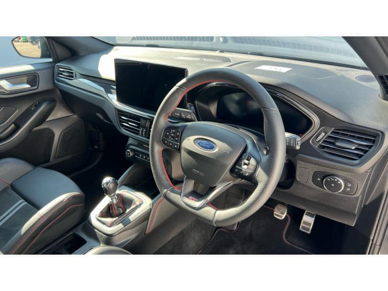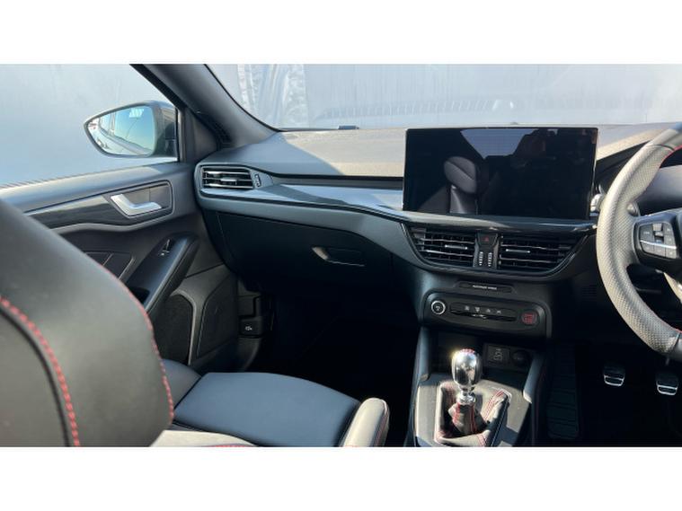 Ford Focus ST 2.3 EcoBoost ST 5dr Petrol Hatchback, , Gloucester Ford have this 1 owner from new Ford Focus Hatchback 2.3 EcoBoost ST finished in the exclusive Magnetic Grey. This Focus 2.3 EcoBoost ST in Magnetic Grey is a perfect fusion of performance, style, and everyday practicality. Its bold hatchback silhouette is enhanced by the striking Magnetic Grey finish, giving it a sleek, athletic presence that stands out effortlessly on the road. Designed for drivers who crave excitement without compromising comfort, this model delivers both dynamic power and refined sophistication. At the heart of the Focus ST lies a responsive 2.3 EcoBoost engine, engineered to provide exhilarating acceleration and impressive torque. Whether navigating city streets or enjoying open highways, the performance feels smooth, controlled, and confidently sporty. The hatchback design adds versatility, offering generous cargo space while maintaining its compact agility. Step inside, and youre welcomed by a thoughtfully crafted interior packed with modern technology. The advanced SYNC 4 infotainment system ensures seamless connectivity, intuitive controls, and enhanced voice recognition, making every journey more convenient and enjoyable. The panoramic roof floods the cabin with natural light, creating an open and airy atmosphere that elevates every drive. Comfort is paramount, with heated seats providing warmth during colder months, ensuring a cosy and relaxing experience for both driver and passengers. The rear view camera adds an extra layer of confidence when parking or reversing, enhancing safety and convenience in tight spaces. Every detail of the Ford Focus ST reflects precision engineering and driver-focused design. From its bold exterior styling to its intelligent features and thrilling performance, this hatchback delivers a well-rounded driving experience that is both practical and inspiring. Its more than just a car, its a statement of energy, innovation, and everyday excitement.
