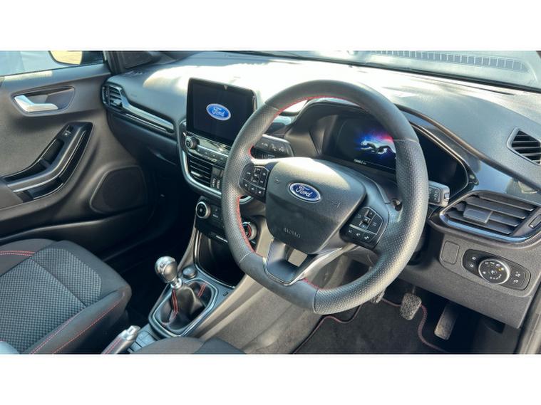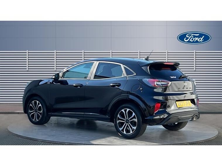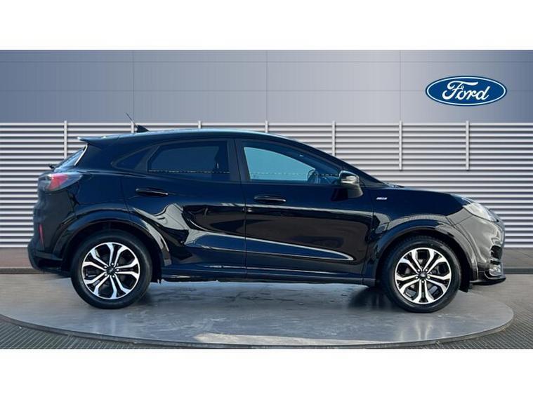 Ford Puma 1.0 EcoBoost Hybrid mHEV ST-Line 5dr Petrol Hatchback, , Gloucester Ford have this 1 owner from new Ford Puma 1.0 EcoBoost mHEV ST-Line finished in Agate Black. This Puma 1.0 mHEV ST-Line in Agate Black is an outstanding example of how style, practicality, and driving enjoyment can come together in one compact SUV. From the moment you see it, the Agate Black finish gives the Puma a sleek, sporty presence thats both modern and eye-catching, perfect for city streets or the open road. Powered by the efficient yet responsive 1.0 EcoBoost engine with mild-hybrid (mHEV) technology, this Puma delivers a refined driving experience with smooth power delivery and improved fuel economy. The mild-hybrid system enhances efficiency without compromising performance, making every drive feel effortless whether youre commuting, cruising the motorway, or navigating winding country lanes. Inside, the ST-Line trim elevates the cabin with a stylish design and high-quality materials that create a comfortable, driver-focused environment. The SYNC 3 infotainment system is intuitive and easy to use, bringing smartphone integration, navigation, and entertainment together in one seamless interface. It ensures connectivity and convenience are always at your fingertips, making journeys more enjoyable for both driver and passengers. Practical features like rear parking sensors add another layer of convenience. They make reversing and parking in tight spaces stress-free, giving you confidence and precision in everyday driving situations. The Pumas clever interior design also maximises space, offering surprising boot capacity and flexible storage options that are ideal for shopping, luggage, or outdoor gear. What truly sets the Ford Puma apart is how it drives. With sharp handling, agile steering, and a comfortable ride, it feels composed and engaging in all conditions. The ST-Line trim enhances that dynamic character with sporty styling cues that reflect its fun-to-drive nature.