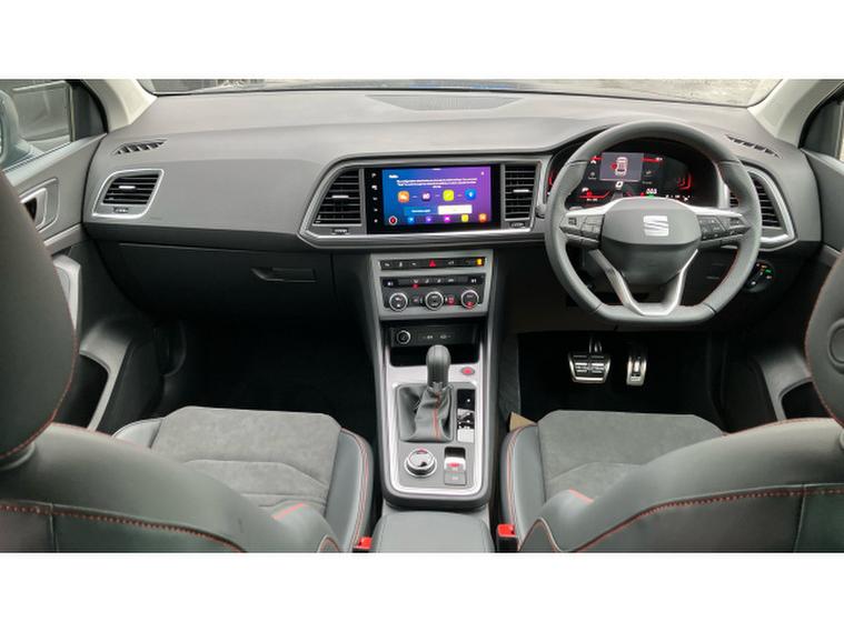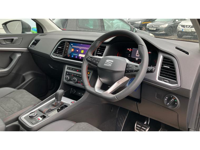 SEAT Ateca 1.5 TSI EVO FR Line 5dr DSG Petrol Estate, , Discover this exceptional SEAT Ateca TSI EVO FR Line, a 2025 model with an astonishingly low 50 miles on the clock, practically as new. This single owner vehicle boasts a Euro 6 compliant 1.5 litre petrol engine and comes in the sporty FR Line trim. It features the Convenience Pack, which includes automatic headlights, and the Safety and Driving Pack, complete with a 360 degree camera for effortless parking. You'll also appreciate the convenience of keyless entry and a wireless phone charger, making every journey smoother.