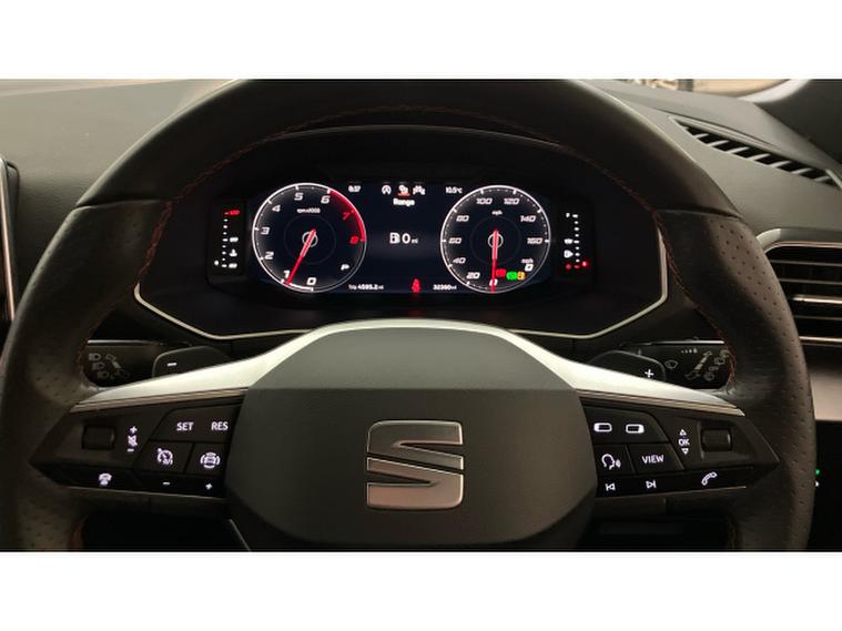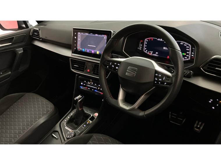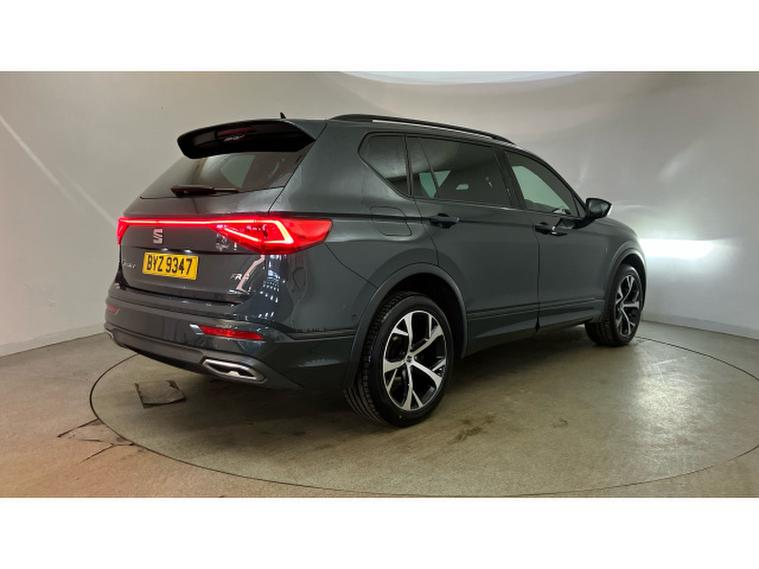 SEAT Tarraco 2.0 EcoTSI FR 5dr DSG 4Drive Petrol Estate, , The 2022 SEAT Tarraco 2.0 TSI FR DSG 4Drive is a large SUV that blends family practicality with genuine sporting appeal. Finished in striking Dark Camouflage metallic and riding on 19-inch diamond-turned two-tone alloy wheels, it has a strong road presence, complemented by black roof rails and the sharper styling cues of the FR trim. Registered 20 July 2022 and with 32, 353 miles, this example also offers the versatility of seven seats.
