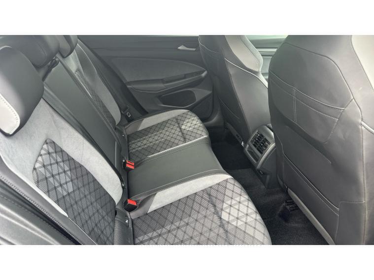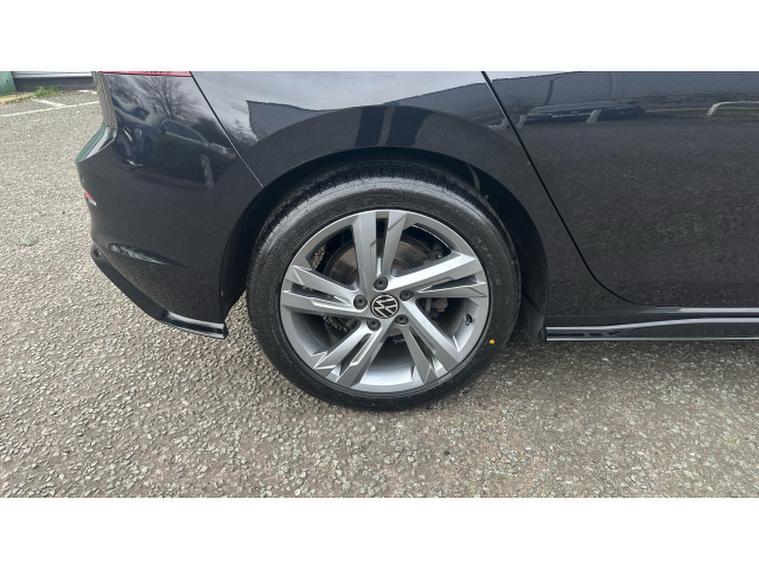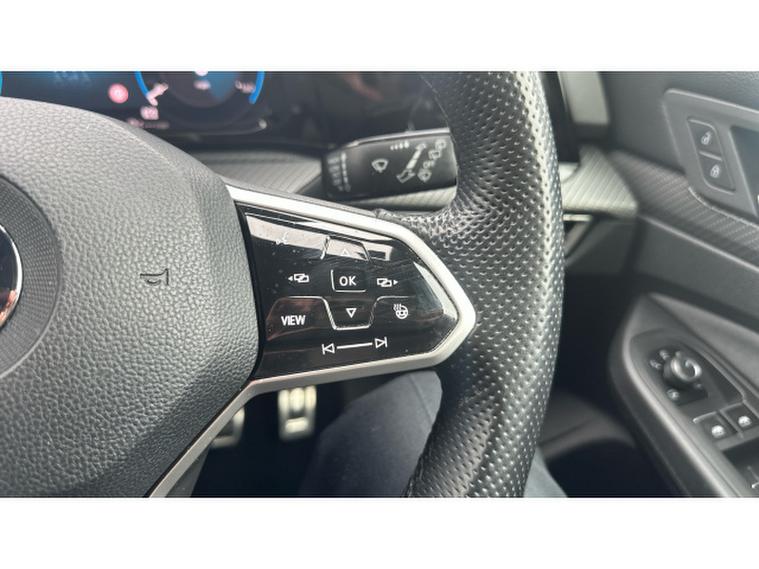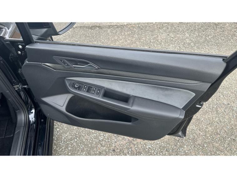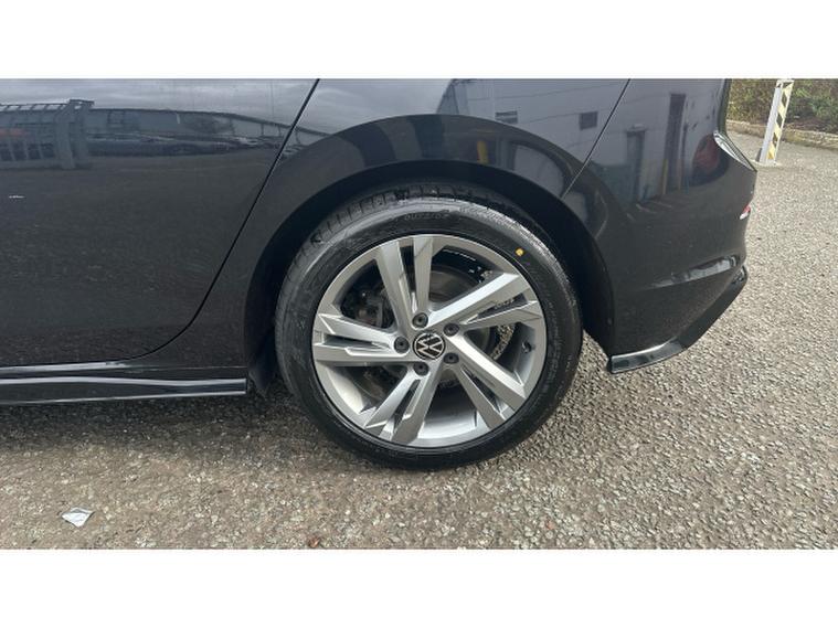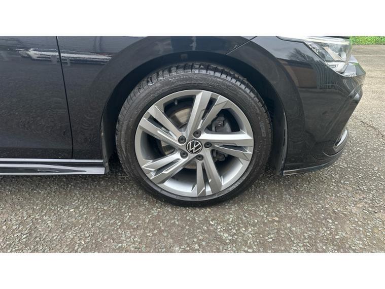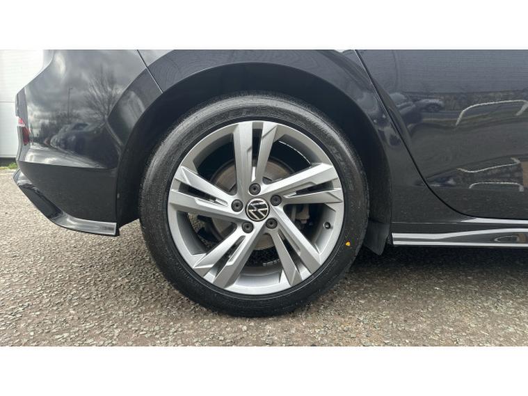 The R-Line styling gives the Golf a dynamic presence, enhanced by the Deep Black Pearl metallic paintwork and rear privacy glass. Inside, the cabin is finished in Anthracite and Titanium Black and features a heated, leather-wrapped multifunction sports steering wheel with touch controls, creating a modern and driver-focused environment.