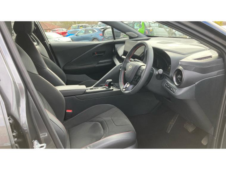 Toyota C-HR 2.0 Hybrid GR Sport 5dr CVT Hybrid Hatchback, , Meet the striking Toyota C-HR GR SPORT 2.0 FWD Hybrid, a head-turning crossover that blends performance-inspired styling with cutting-edge hybrid efficiency. Finished in stunning Decuma Grey Bi-tone metallic paintwork, this GR SPORT model stands out with its bold, athletic design and premium feel. With just 3, 034 miles on the clock, its barely run in and ready for its next adventure. The powerful yet efficient 2.0-litre self-charging hybrid system delivers smooth, responsive driving while maintaining excellent fuel economy. Inside, youll find a high-tech cabin packed with features including a large touchscreen multimedia system with smartphone integration, advanced driver assistance systems, adaptive cruise control, reversing camera, heated sports seats, and GR SPORT styling details that elevate the driving experience. Even better, this vehicle benefits from Toyotas incredible 10-Year Service Activated Warranty, giving you long-term confidence and peace of mind every time you drive. Stylish, sporty and packed with technology, this C-HR GR SPORT is the perfect blend of excitement and everyday practicality.