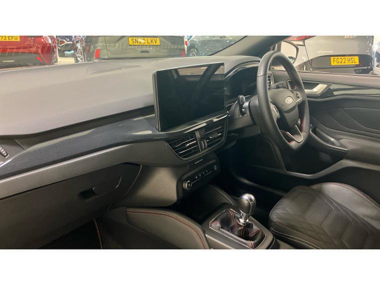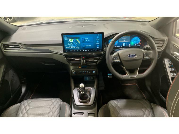 Ford Focus 1.0 EcoBoost Hybrid mHEV ST-Line X 5dr Petrol Hatchback, , The 2025 Ford Focus Hatchback 1.0 EcoBoost Hybrid mHEV ST Line X 5dr is a modern and stylish family hatch that blends efficiency, sporty design and everyday practicality. Built with mild hybrid (mHEV) EcoBoost technology, this Focus delivers a peppy yet economical drive, paired with a distinctive ST Line X appearance and up to date technology making it a strong choice for drivers who want a versatile and engaging. The ST Line X trim adds sporty and dynamic touches to the Focus, giving it a more aggressive look and premium feel. Key design elements include: