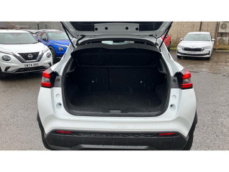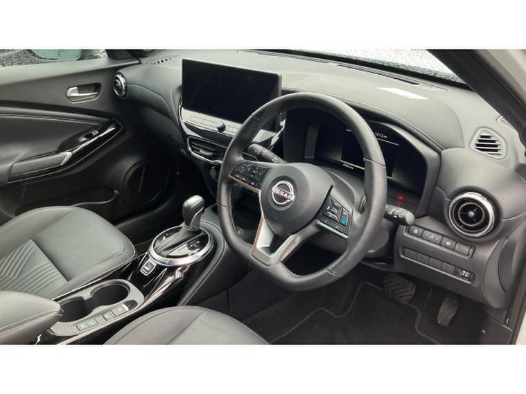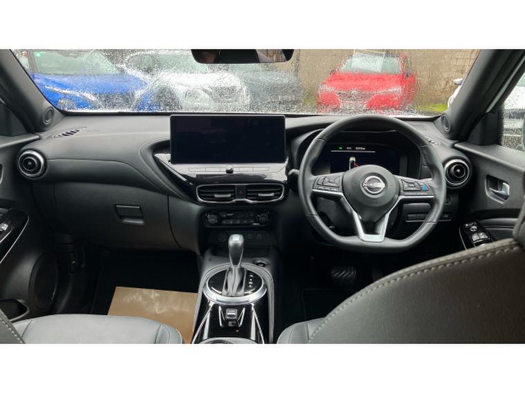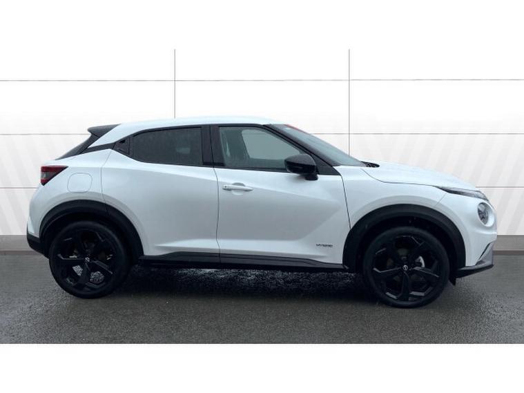 Nissan Juke 1.6 Hybrid Tekna 5dr Auto Hybrid Hatchback, , The Nissan Juke has styling like no other and a decent amount of standard equipment. The Nissan Juke is one of the most divisive cars on the road thanks to its outlandish styling, but underneath the metalwork is a sensible small SUV thats affordable and well equipped. Though for funky looks, the Juke is still king. The swept-back LED strips above massive, round headlights, low roofline and mass of creases along its doors and wheel arches come together in what is one of the most out-there cars on sale. We still cant tell if its handsome, but the Juke is certainly attention grabbing. The cabin isnt as zany as the exterior, with wraparound door cards enveloping the dashboard and a widescreen infotainment display offset above the air vents. Material quality is good, with an Alcantara strip behind the touchscreen elevating things slightly. With most Nissan Jukes set for a lifetime of running around town, its no surprise to learn this is where its best suited. A high-set driving position means youve got a good view of the road ahead, and suitably light steering makes it a breeze to park. With 422 litres to work with in the boot, the Nissan Juke is pretty much par for the course in its class. For context, a VW T-Cross takes the cake with 455 litres, while the Renault Captur matches the Juke. A Skoda Kamiq offers less than all of these at 400 litres. You need the load floor in its higher position if you want it to be level with the 60-40 split-and-fold rear seats when they are tipped forward. With this done, the Juke has up to 1, 305 litres of load capacity, which is among the best among its peers. All versions of the Juke are equipped with a 12.3-inch touchscreen infotainment system. This is a big improvement on the setup previously fitted to the Juke - it's clear, bright and responsive, though certain aspects of the interface are easy to use. It does come equipped with Android Auto and Apple CarPlay - allowing you to seamlessly run your phone apps through the screen.