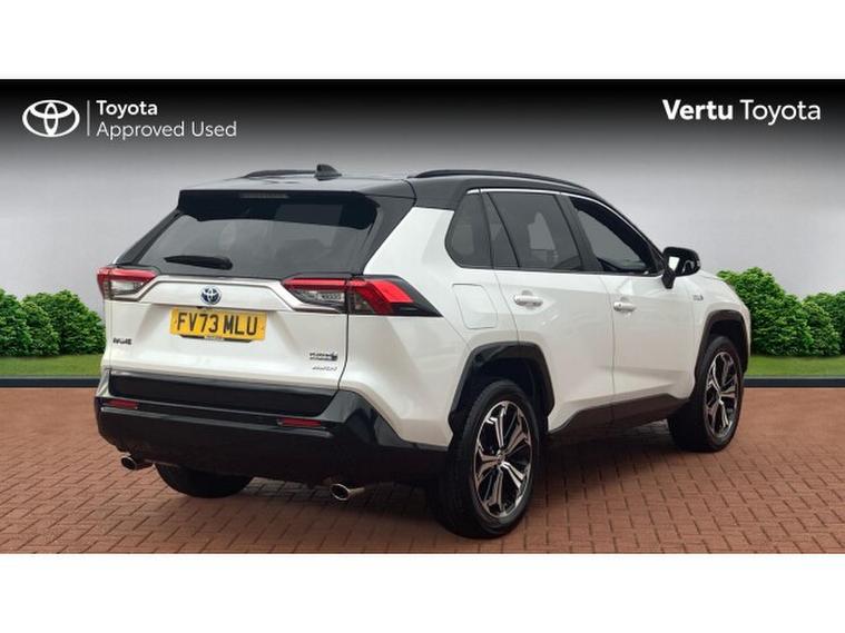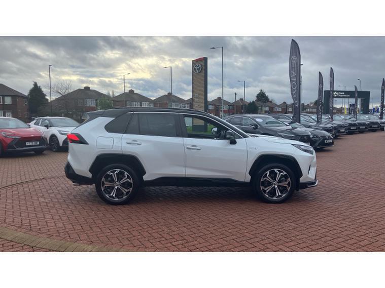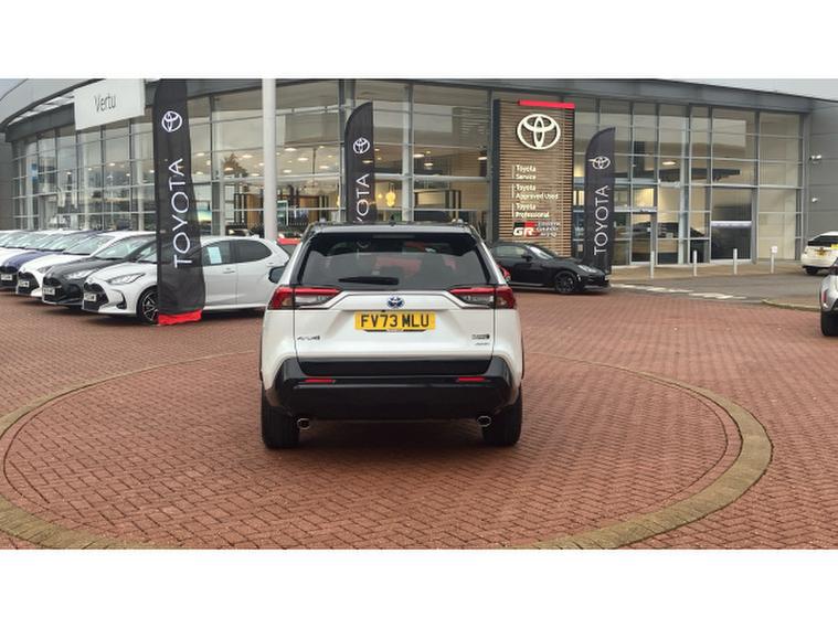 Toyota RAV4 2.5 PHEV Dynamic 5dr CVT Estate, , This 2023 Toyota RAV4 VVT Dynamic boasts exceptionally low mileage for its year, having covered just 12070 miles. This Euro 6 compliant, four wheel drive model features a powerful 2.5 litre petrol plug in hybrid engine, offering an efficient and responsive driving experience. You'll appreciate the convenience of Smart Entry and Push Button Start, along with Bluetooth connectivity for seamless smartphone integration, including Apple CarPlay and Android Auto. The Dynamic trim also comes equipped with LED dual beam projector headlights, ensuring excellent visibility, and front and rear parking sensors with parking assistance to make manoeuvring effortless.