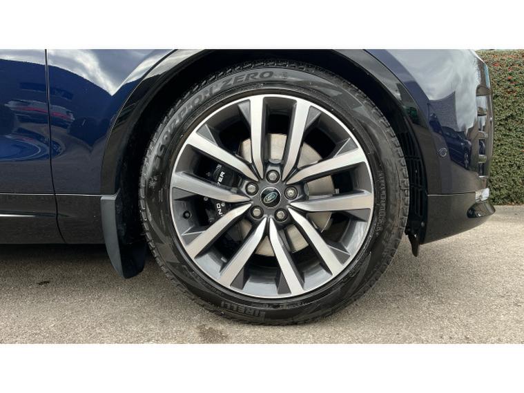 The vehicle's commanding presence is enhanced by 21" Style 5123 DT Gloss Dark Grey alloy wheels, complemented by Black Roof Rails for added functionality and a sleek, modern look. A 21" full-size spare wheel provides additional reassurance for longer trips and off-road adventures.