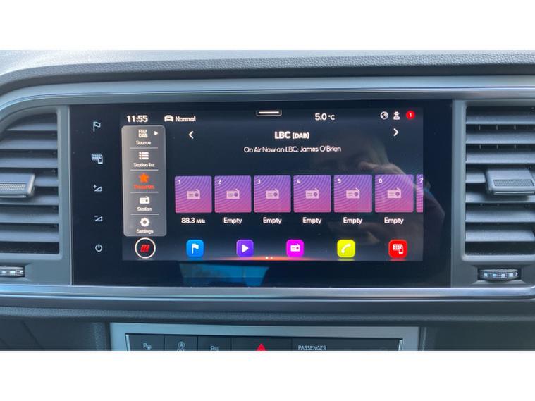 The FR Sport specification brings a premium feel and excellent technology as standard. A large touchscreen infotainment system with integrated satellite navigation, Apple CarPlay and Android Auto keeps you fully connected, while Bluetooth, DAB radio and a wireless phone charger add everyday convenience. Dual-zone climate control, keyless start, ambient interior lighting and a multifunction steering wheel enhance comfort, and the SEAT Drive Profile system allows you to select driving modes such as Eco, Normal and Sport to tailor the car to your driving style.