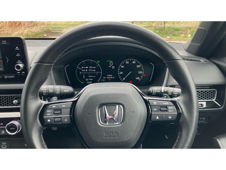 Under the bonnet, the advanced 2.0 eHEV self-charging hybrid system delivers an impressive balance of power and economy. The intelligent hybrid setup seamlessly blends petrol and electric performance to provide strong acceleration when needed while maintaining excellent fuel efficiency during everyday driving. Paired with a smooth CVT automatic transmission, the Civic offers effortless progress, quiet cruising and a refined driving experience whether youre commuting through the city or travelling longer distances on the motorway.