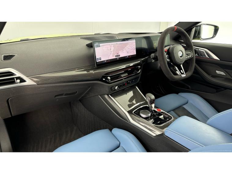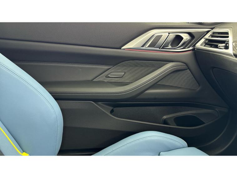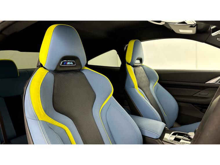 The BMW M4 Competition is a bold expression of high-performance engineering, blending striking coup styling with razor-sharp handling and immense twin-turbo power for an adrenaline-charged driving experience. Diving into the standout features The 19 Inch Front & 20 Inch Rear Double-Spoke Alloy Wheels give that car a race car like stance with a delightful contrast to the stunning Sao Paulo Yellow finish. The M Sport Differential distributes power evenly through your rear tyres to avoid wheel spin and offer more control over the car. The M Adaptive Suspension lets you adjust your ride to suit your needs and offer comfort with a smooth ride. The M Sport Brakes with Blue Calipers not only look aesthetically pleasing but offer wonderful stopping power you can rely on.