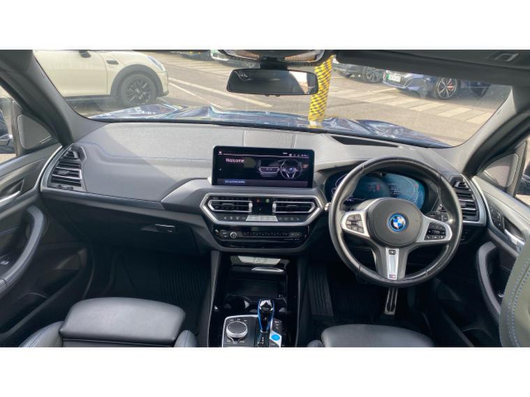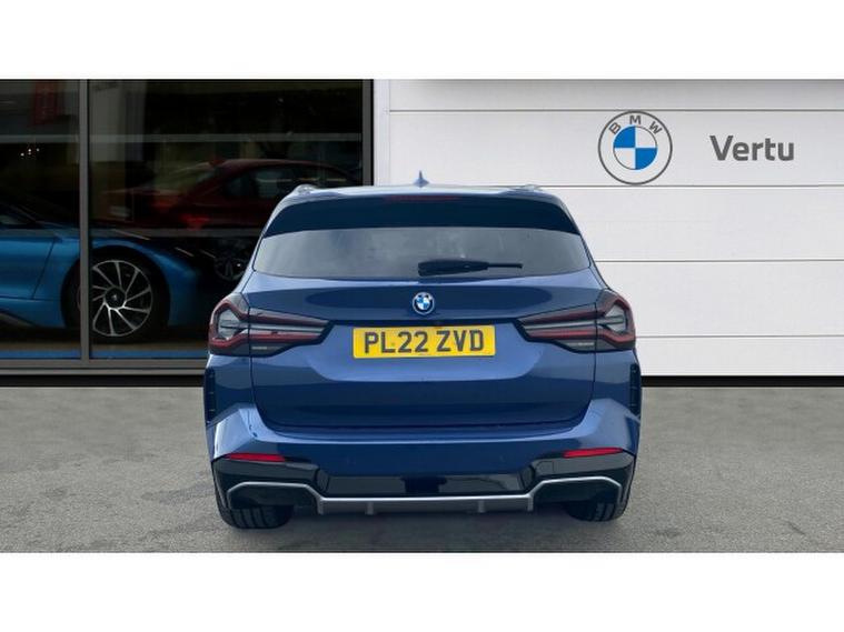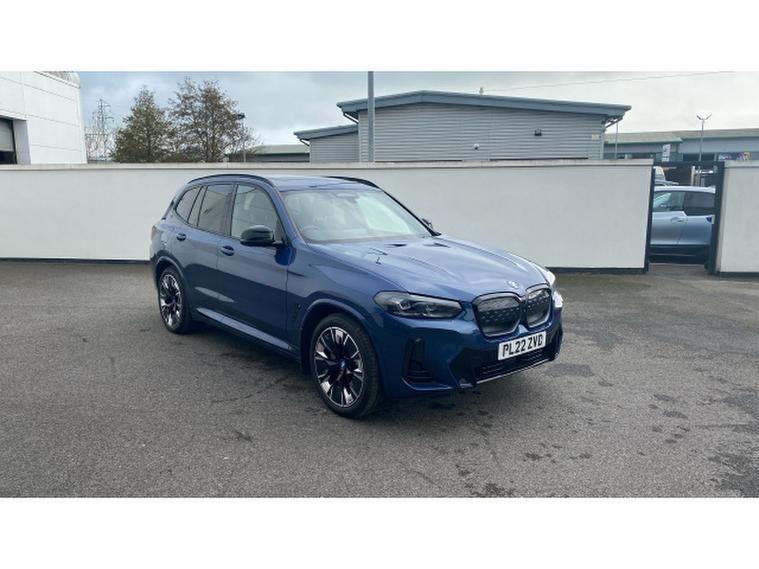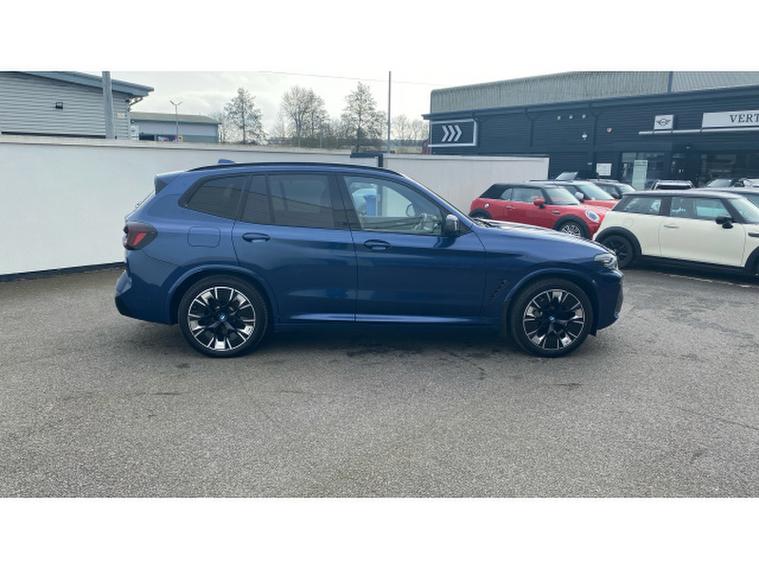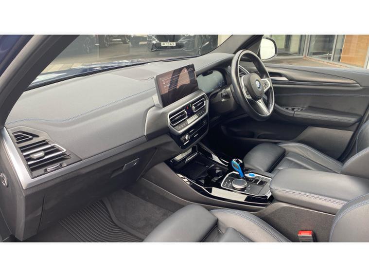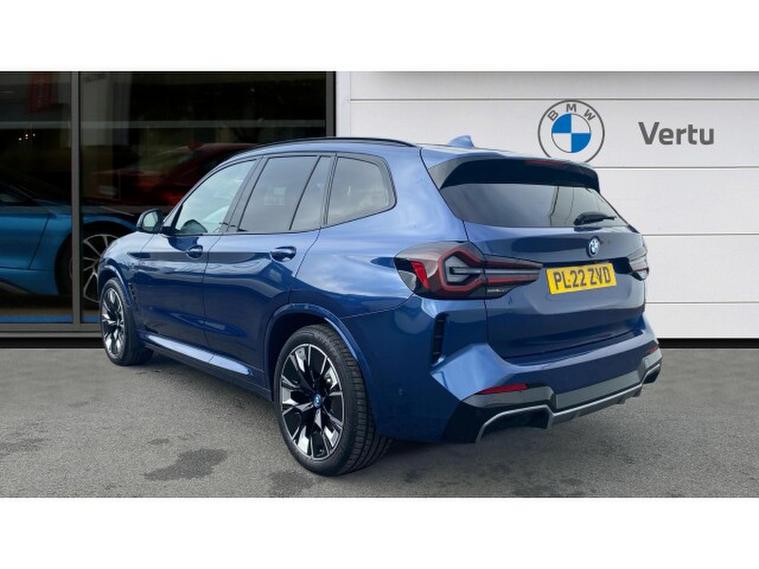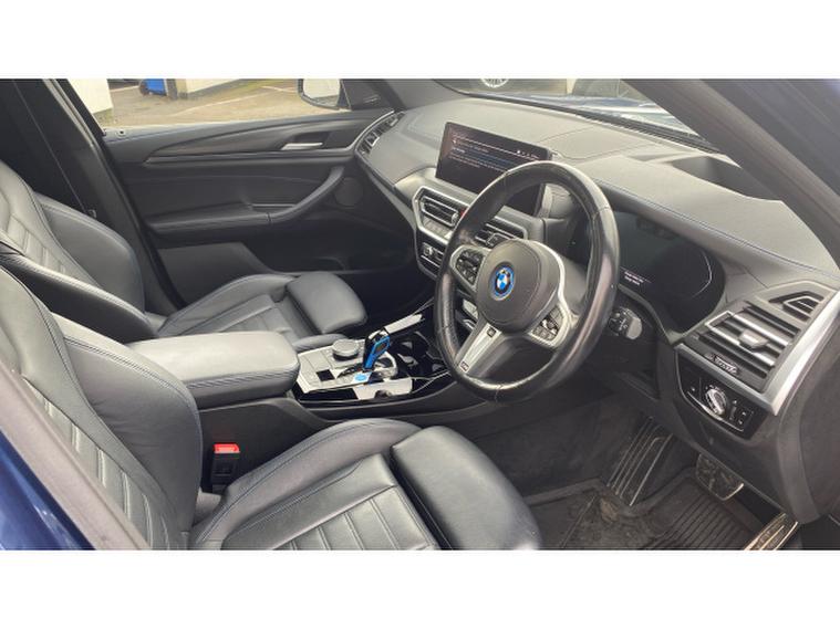 BMW iX3 210kW M Sport Pro 80kWh 5dr Auto Electric Estate, , Step into the future of premium electric driving with this stunning Phytonic Blue Metallic BMW iX3 M Sport Pro. Its bold styling is complemented by sleek 20-inch alloy wheels, while the cabin features refined Black Seats with Blue Contrast Stitching, perfectly echoing the car's electric personality and modern BMW design language.