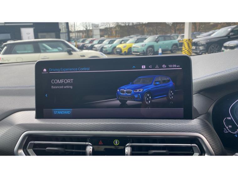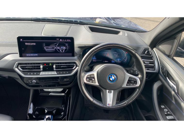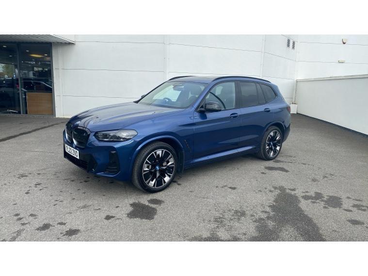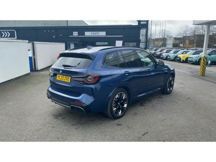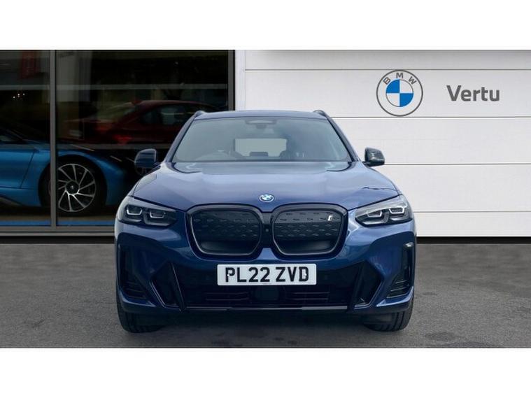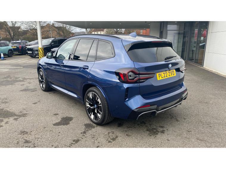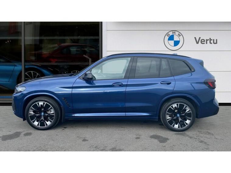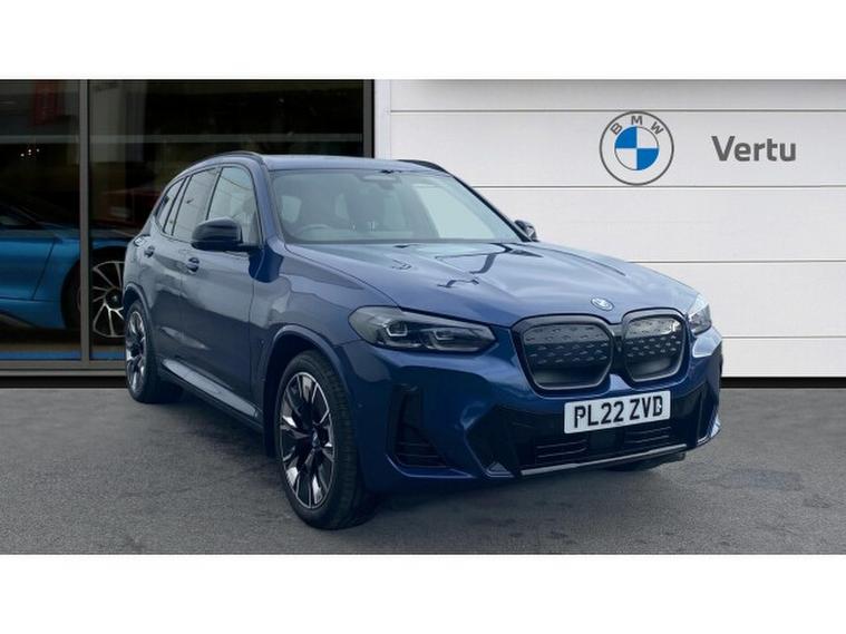 BMW iX3 210kW M Sport Pro 80kWh 5dr Auto Electric Estate, , Step into the future of premium electric driving with this stunning Phytonic Blue Metallic BMW iX3 M Sport Pro. Its bold styling is complemented by sleek 20-inch alloy wheels, while the cabin features refined Black Seats with Blue Contrast Stitching, perfectly echoing the car's electric personality and modern BMW design language.