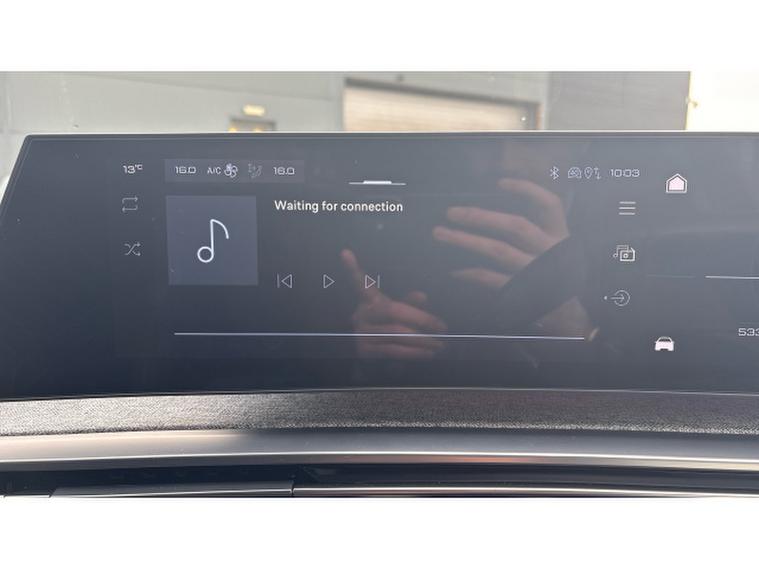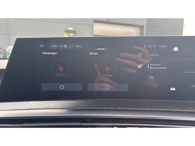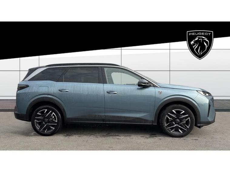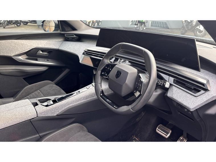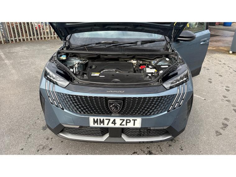 Inside, the 5008 features Peugeots modern Panoramic i-Cockpit with a large digital display and touchscreen infotainment system, along with satellite navigation, smartphone connectivity with Apple CarPlay and Android Auto, and a host of driver assistance features. The GT trim adds sporty styling, premium materials and striking alloy wheels, giving the car a refined yet dynamic feel.