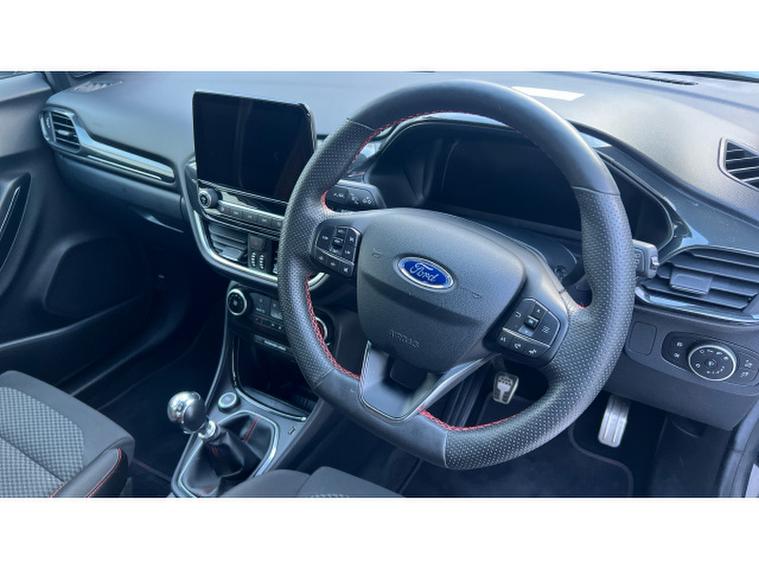 Ford Puma 1.0 EcoBoost Hybrid mHEV ST-Line 5dr Petrol Hatchback, , Gloucester Ford have this 2 owner from new Ford Puma 1.0 EcoBoost mHEV ST-Line finished in Agate Black. This Ford Puma ST-Line in striking Agate Black is a compelling blend of style, efficiency and everyday practicality that truly stands out in the compact hatch segment. From the moment you lay eyes on it, the sleek Agate Black finish gives the Puma a sophisticated and sporty presence that turns heads wherever you go. The ST-Line trim elevates the exterior with dynamic styling cues that reflect the Pumas energetic character, while the overall design promises both flair and function. The 1.0 EcoBoost mHEV powertrain offers an engaging and efficient driving experience. With mild-hybrid technology supporting smoother stop-start performance and improved fuel economy, this Puma delivers spirited acceleration when you need it and relaxed cruising when you dont. Its the ideal balance of performance and everyday usability, perfect for urban commutes and longer journeys alike. Step inside, and the interior impresses with thoughtful design and comfort. The heated seats are a welcome luxury, especially on chilly mornings, providing warmth and support that make every drive more enjoyable. Whether youre battling peak-hour traffic or heading out for a weekend adventure, the cabin feels welcoming, refined and comfortable. The SYNC 3 infotainment system is intuitive and easy to use, offering seamless smartphone integration, voice control and clear navigation guidance. Staying connected and entertained on the move has never been simpler. Manoeuvring in tight spaces is stress-free thanks to the rear sensors, which give extra confidence when reversing or parking in busy areas. This feature adds a layer of convenience that enhances everyday driving. Overall, the Ford Puma Hatchback 1.0 EcoBoost mHEV ST-Line in Agate Black is a brilliantly balanced package stylish, efficient, comfortable and packed with technology that elevates the drive. Its a car that makes every journey a pleasure.