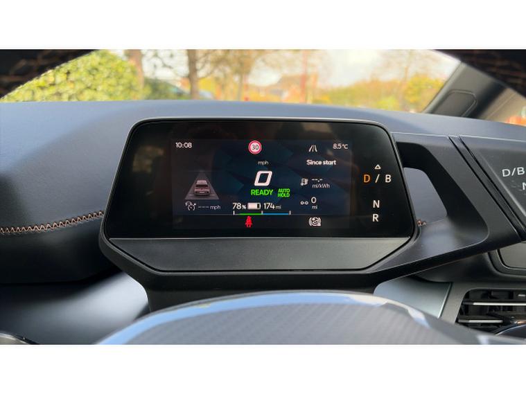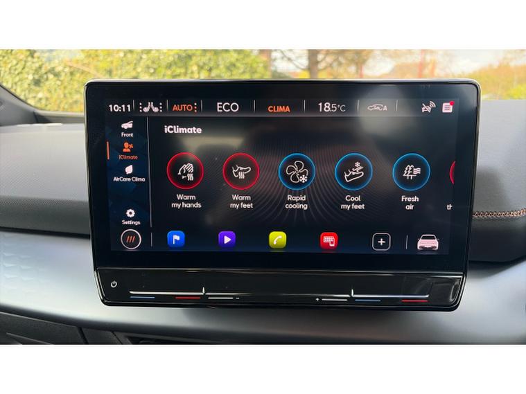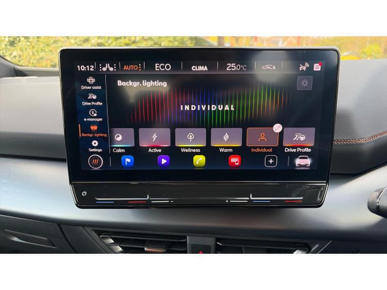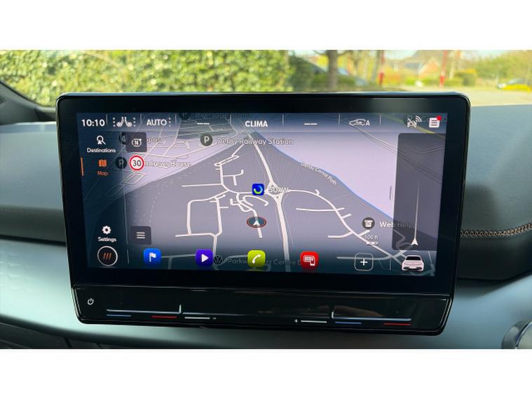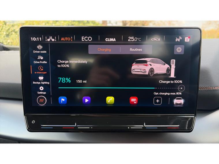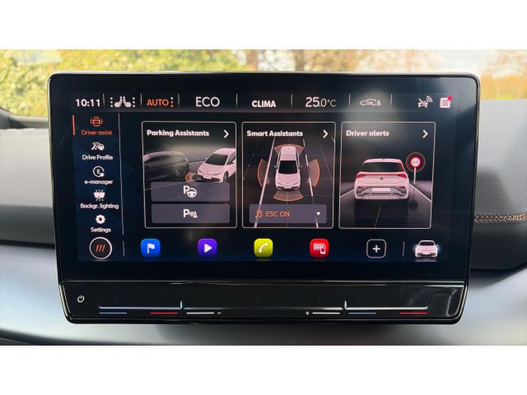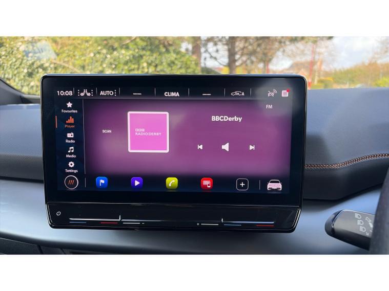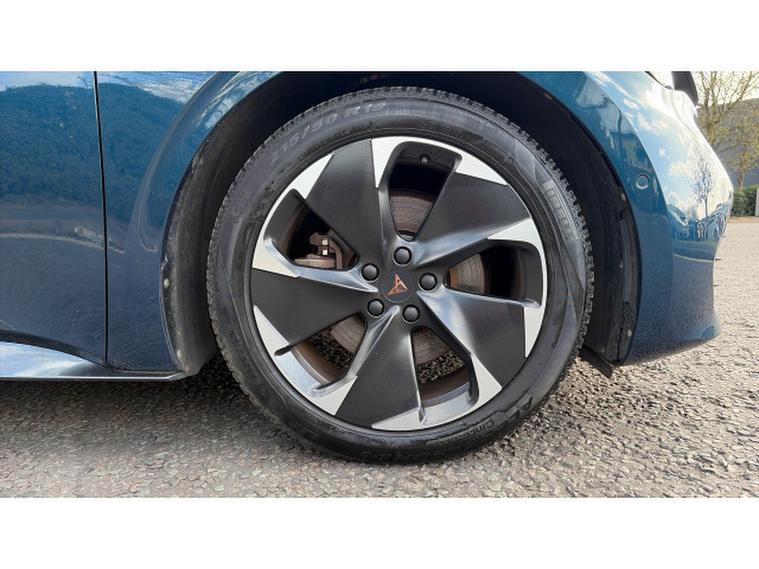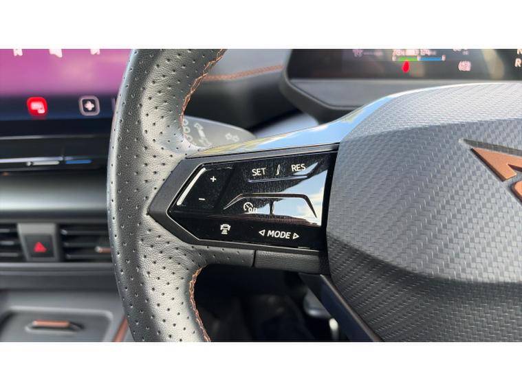 Step inside and the V2 specification reveals a cabin that feels both futuristic and driver-focused. A digital cockpit display provides all essential driving information at a glance, while the large central touchscreen infotainment system features integrated navigation and seamless smartphone connectivity via wireless Apple CarPlay and Android Auto. Heated front seats, a heated steering wheel and dual-zone climate control ensure comfort in all conditions, while ambient lighting and CUPRAs signature copper accents create a premium, sporty atmosphere. Advanced driver assistance systems including adaptive cruise control, lane assist, front and rear parking sensors and a rear-view camera make every journey safer and more relaxed.