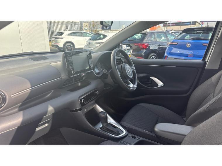Toyota Yaris 1.5 Hybrid Icon 5dr CVT Hybrid Hatchback, , Experience exceptional efficiency, reliability, and modern design with this Toyota Yaris. Powered by Toyotas advanced self-charging 1.5 litre hybrid system paired with a smooth CVT automatic gearbox, this Yaris delivers impressive fuel economy, low emissions, and a refined, quiet drive whether youre navigating city streets or cruising on the motorway. Its sharp exterior styling features sleek body lines, LED daytime running lights, bold front grille detailing, and stylish alloy wheels, giving the Yaris a confident and contemporary road presence. Inside, the cabin is intelligently designed for comfort and convenience, offering high-quality materials, supportive seating, and intuitive technology throughout. The easy-to-use touchscreen infotainment system includes Bluetooth connectivity, DAB radio, and a reversing camera to make every journey effortless. Toyota Safety Sense provides added peace of mind with advanced driver assistance features such as lane departure alert, adaptive cruise control, and pre-collision braking. With excellent passenger space, a practical boot, and renowned Toyota reliability, this Yaris Hybrid is the perfect choice for drivers seeking economical motoring with modern technology and everyday practicality in a stylish and dependable hatchback.