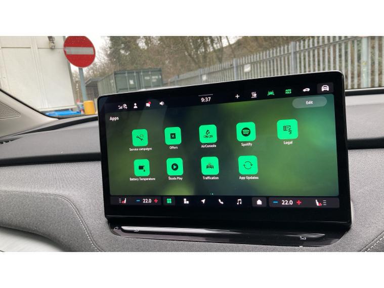 Skoda Enyaq 210kW 85 Edition 82kWh 5dr Auto Electric Estate, , Forward-thinking yet unmistakably practical, the 2025 koda Enyaq Estate 210kW 85 Edition 82kWh 5dr Auto represents the Czech brands confident stride into the electric era, blending strong performance with the everyday usability families expect from a large SUV. Its rear-mounted electric motor produces an impressive 286PS (210kW) and 545Nm of torque, delivering smooth, instant acceleration and a brisk 062mph time of around 6.7 seconds while maintaining a WLTP driving range of up to roughly 360 miles from its substantial 82kWh battery.The Edition specification adds a premium feel with features such as a large 13-inch infotainment touchscreen with navigation, wireless smartphone connectivity, wireless charging, heated seats and advanced driver-assistance systems including predictive adaptive cruise control and lane assist.Practicality remains a hallmark too, with generous passenger space and a large, flexible boot, complemented by thoughtful touches such as sliding rear seats, ambient lighting and electrically operated tailgate access.Rapid-charging capability and home-charging compatibility ensure the Enyaq is as convenient as it is refined, making it a compelling choice for drivers seeking a spacious, technology-rich electric SUV that effortlessly balances performance, comfort and zero-emission motoring.