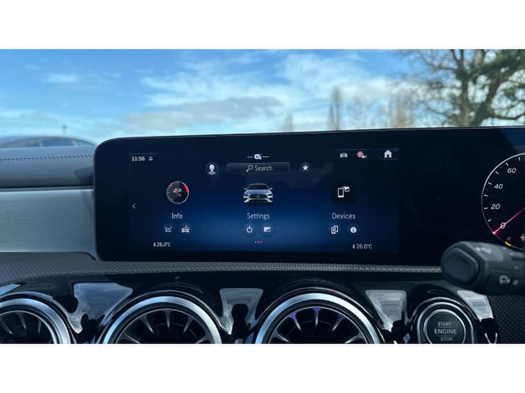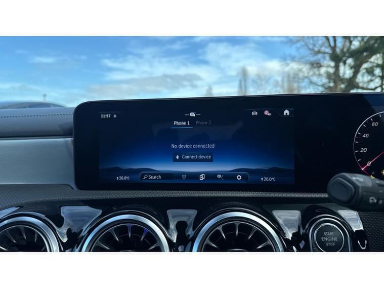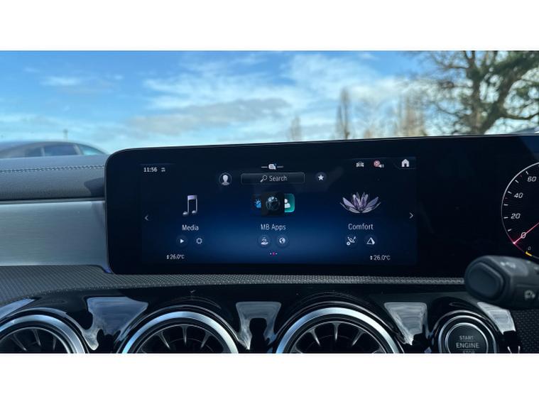 Inside, the CLA showcases the cutting edge technology that defines the Mercedes Benz experience. The MBUX infotainment system with Augmented Reality satellite navigation brings directions directly into your field of view, while Apple CarPlay ensures seamless smartphone integration. Wireless mobile phone charging keeps your cabin clutter free and connected at all times.