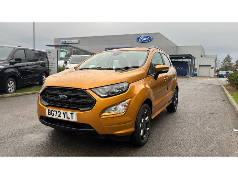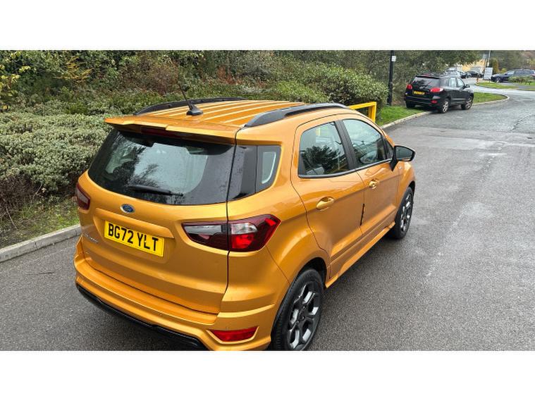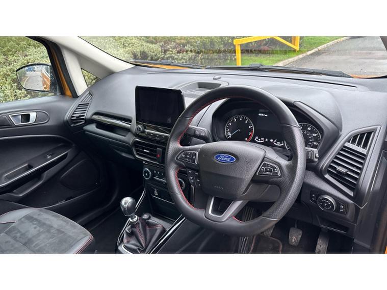 Ford EcoSport 1.0 EcoBoost 140 ST-Line 5dr Petrol Hatchback, , **Ex-Motability - One Owner, Full History** As an ST-Line model, this EcoSport stands out with its dynamic design, featuring distinctive ST-Line body styling, sports suspension, a large rear spoiler, black roof rails and stylish alloy wheels that give it a more athletic presence on the road.